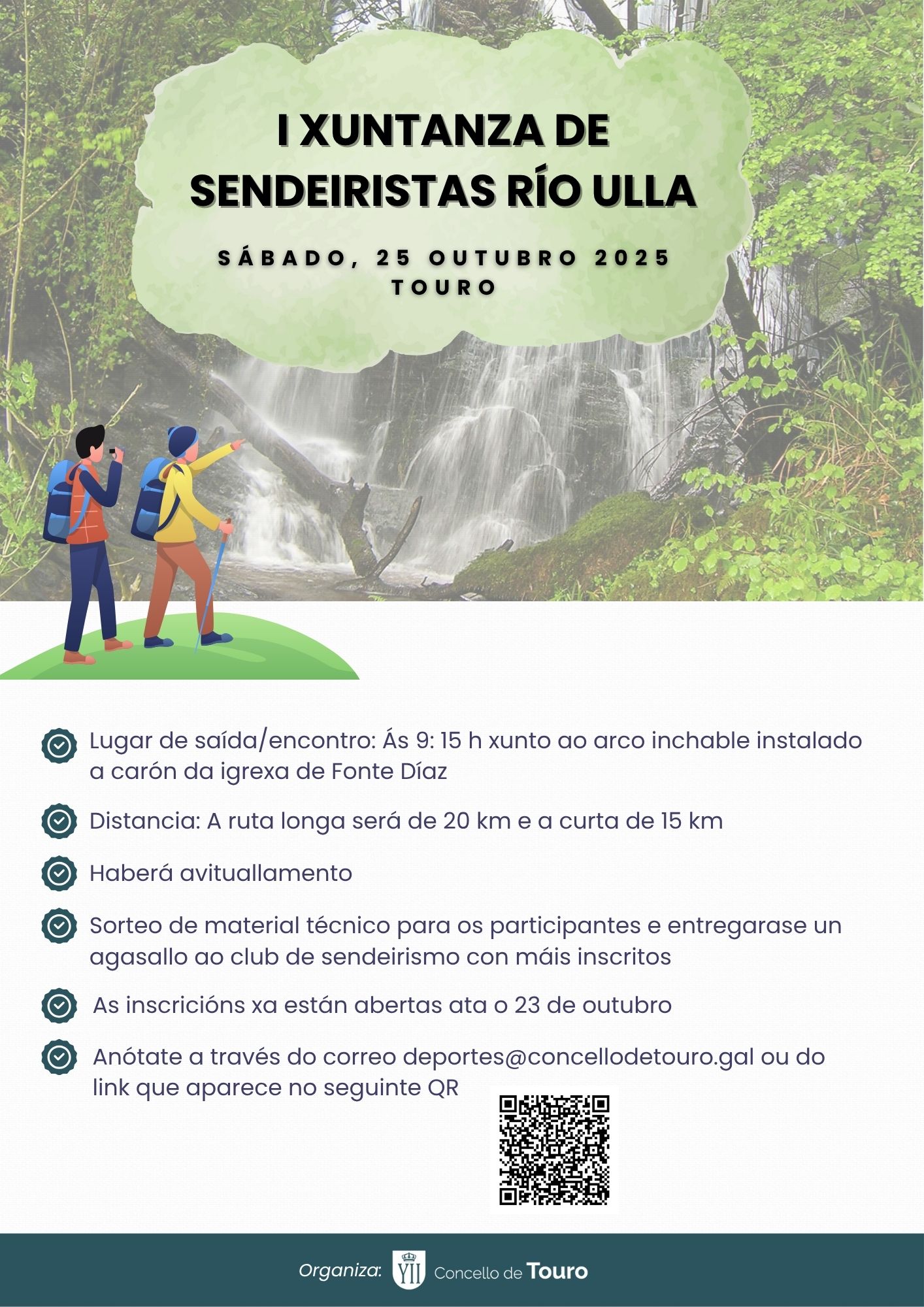 Haberá unha ruta de 20 km e outra de 15. O prazo de inscrición xa está aberto ata o 23 deste mes. Podes anotarte a través do correo electrónico deportes@concellodetouro.gal ou do seguinte link:O CONCELLO DE TOURO REACTIVOU A AGRUPACIÓN DE PROTECCIÓN CIVIL