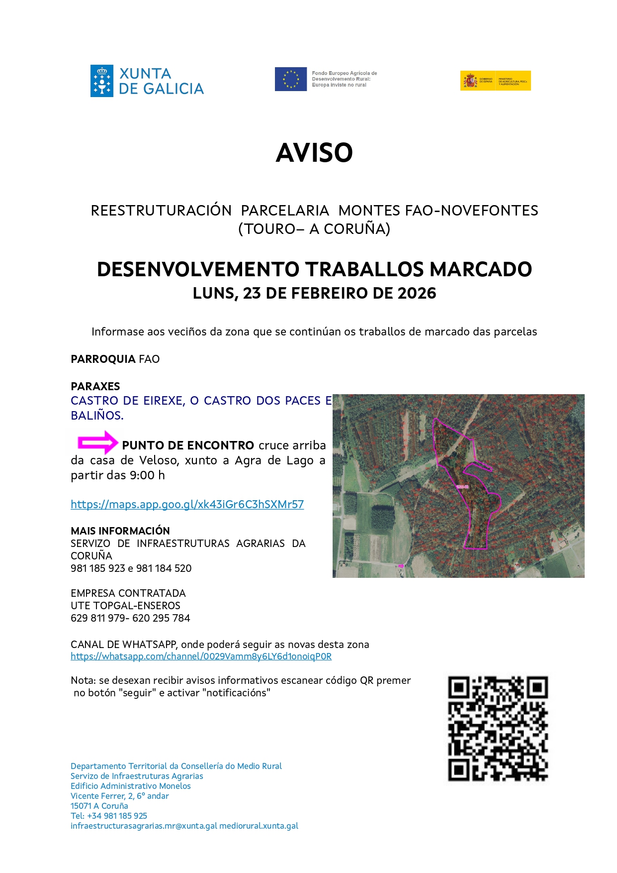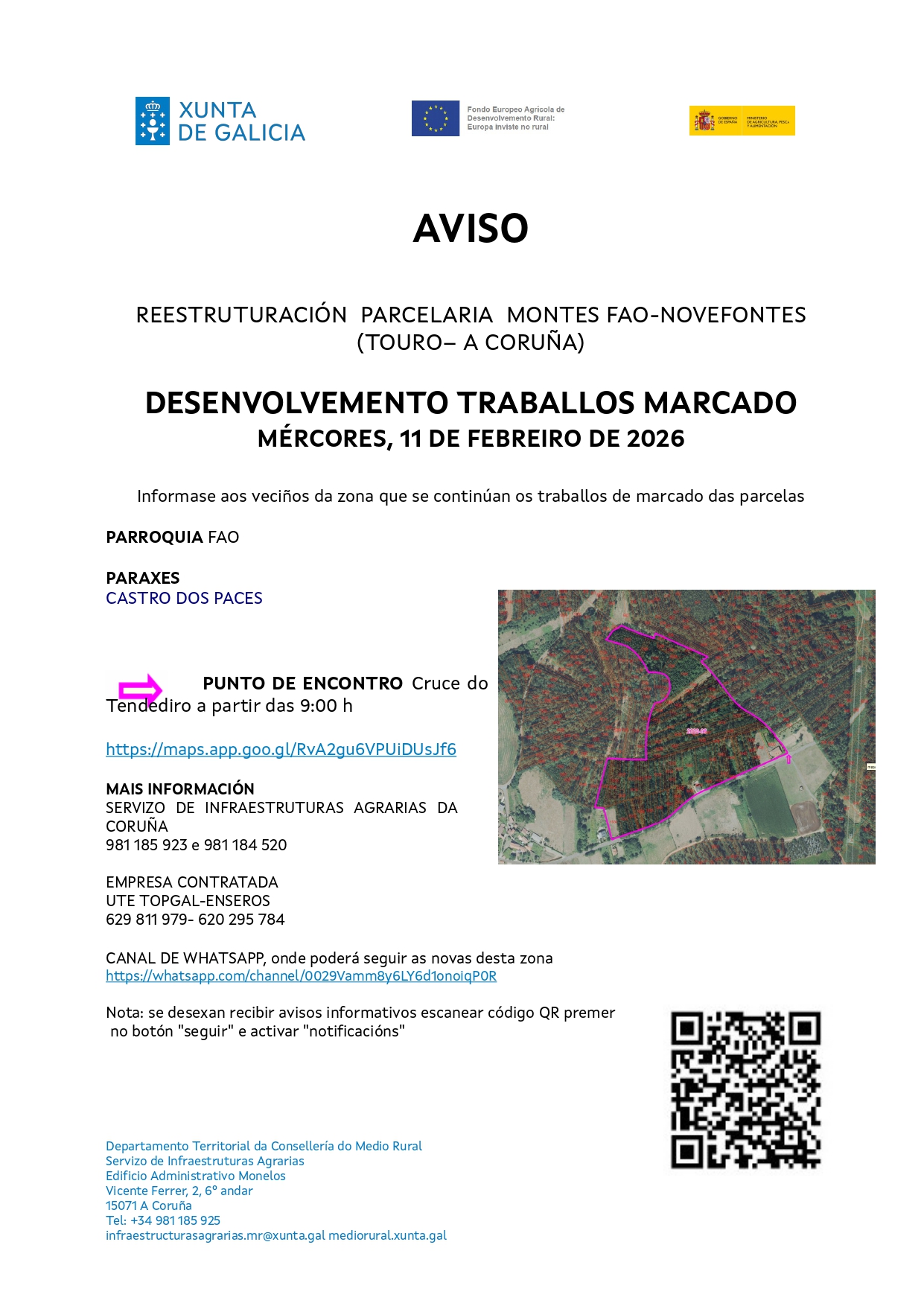 MAÑÁ, MÉRCORES 11 DE FEBREIRO DE 2026, CONTINUARÁN OS TRABALLOS DE MARCADO DAS PARCELAS EN FAO