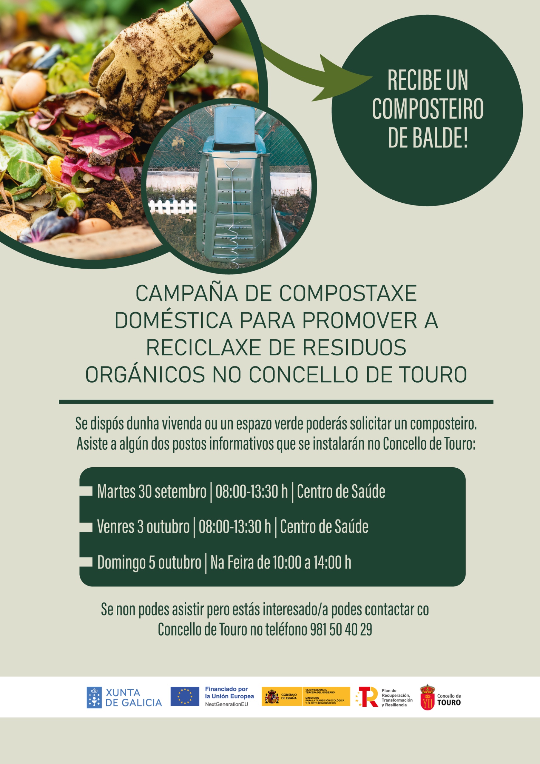 No concello de Touro levarase a cabo unha campaña de compostaxe doméstica para promover a reciclaxe de residuos orgánicos e poderás recibir un composteiro de balde!