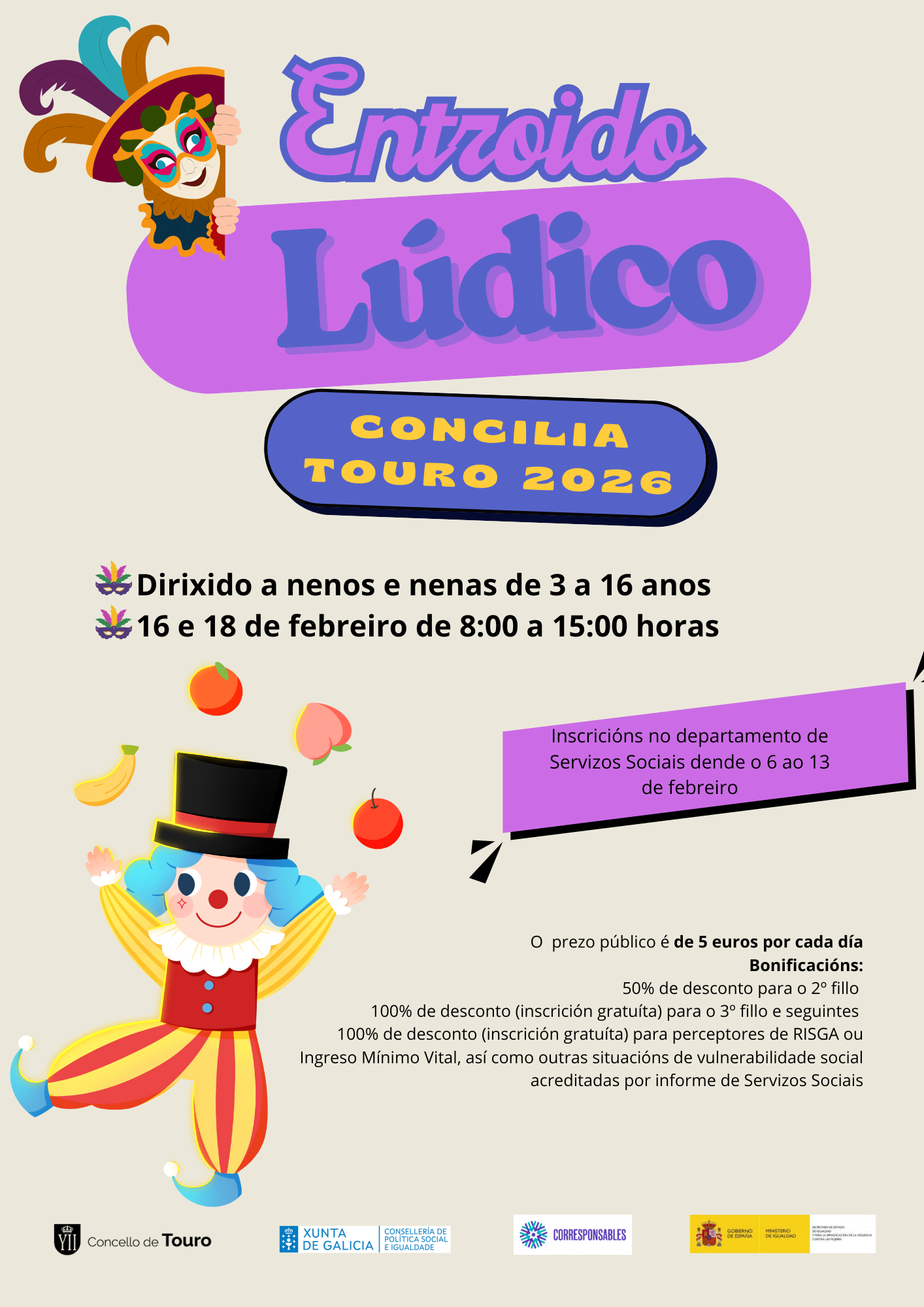 ABERTO O PRAZO PARA O ENTROIDO LÚDICO: CONCILIA TOURO 2026