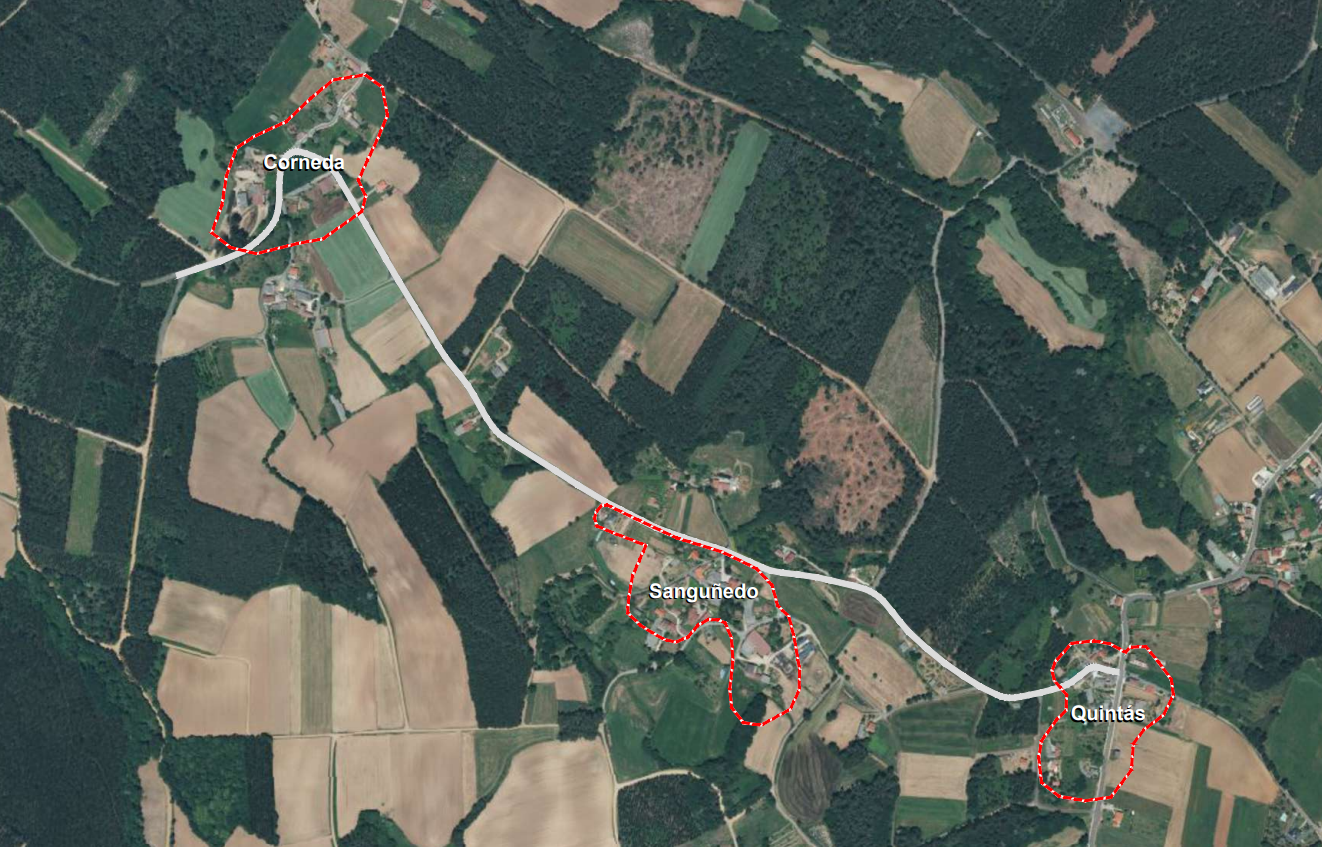 Este vial sitúase na parroquia de Prevediños e dá acceso e servizo aos núcleos de poboación de Quintáns, Sanguñedo e Corneda, conectándoos con outros lugares do municipio a través da estrada AC-240.