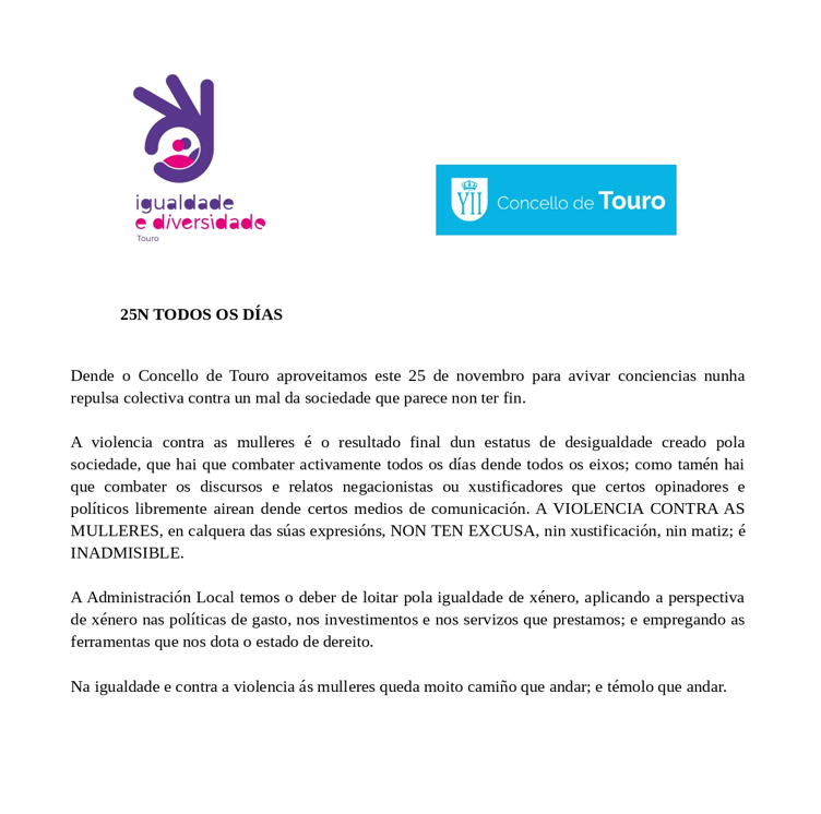 MANIFESTO DO CONCELLO DE TOURO CON MOTIVO DO 25 N2023-11-25 10:33:02Concello25N TODOS OS DÍAS