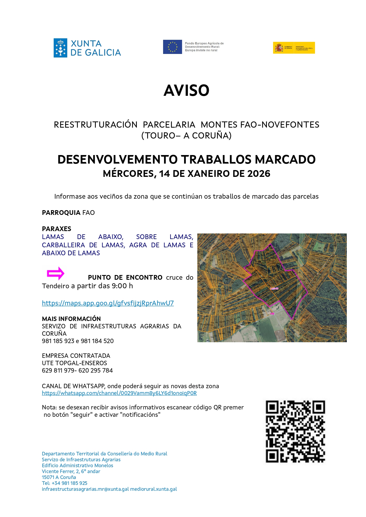 AVISO DA CONVOCATORIA PARA O MÉRCORES 14 DE XANEIRO DE 2026, CON MOTIVO DA CONTINUACIÓN DOS TRABALLOS DE MARCADO DAS PARCELAS NA PARROQUIA DE FAO