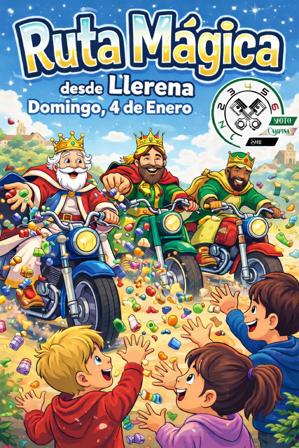 El próximo domingo, 4 de enero, recibiremos la visita de los Reyes Magos, acompañados por el grupo de moteros Campiña Sur. Pasarán por nuestro pueblo alrededor de las 10:10 de la mañana y repartirán caramelos entre los más pequeños. Harán una parada de unos 20 minutos en la plaza del pueblo.