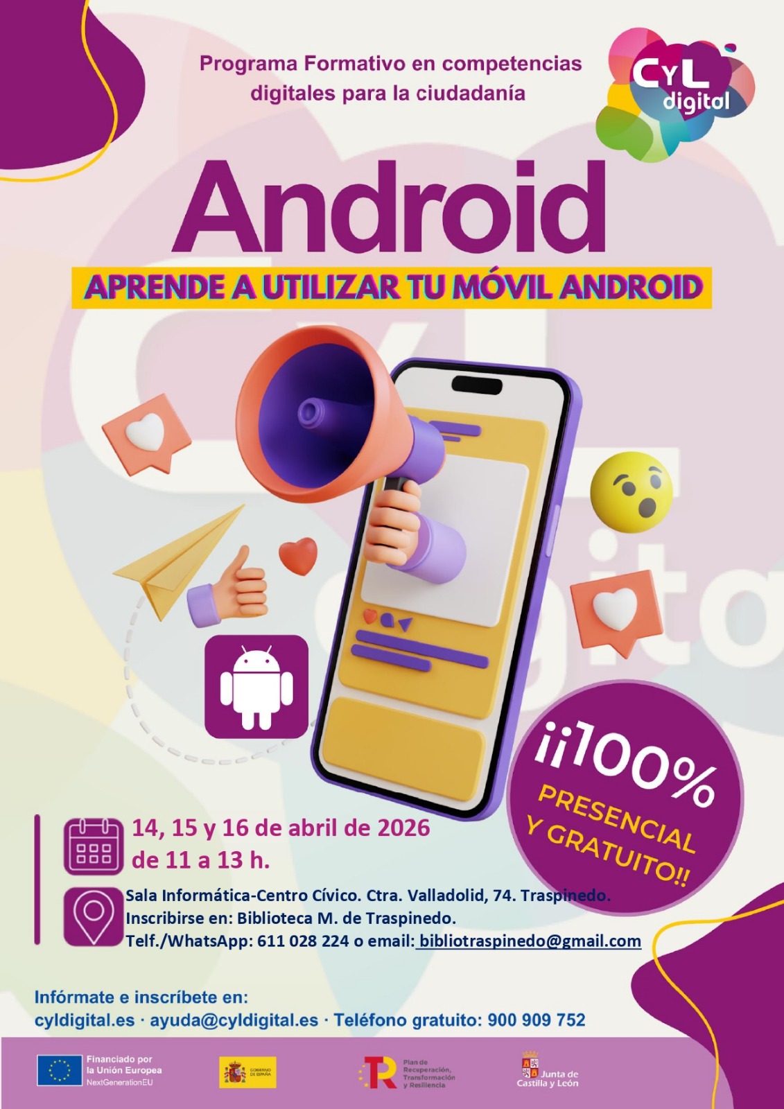 🔰📲💻 TALLER PARA APRENDER A UTILIZAR TU MÓVIL ANDROID (14, 15 y 16 de abril, Sala Informática-Centro Cívico) 🔰📲💻