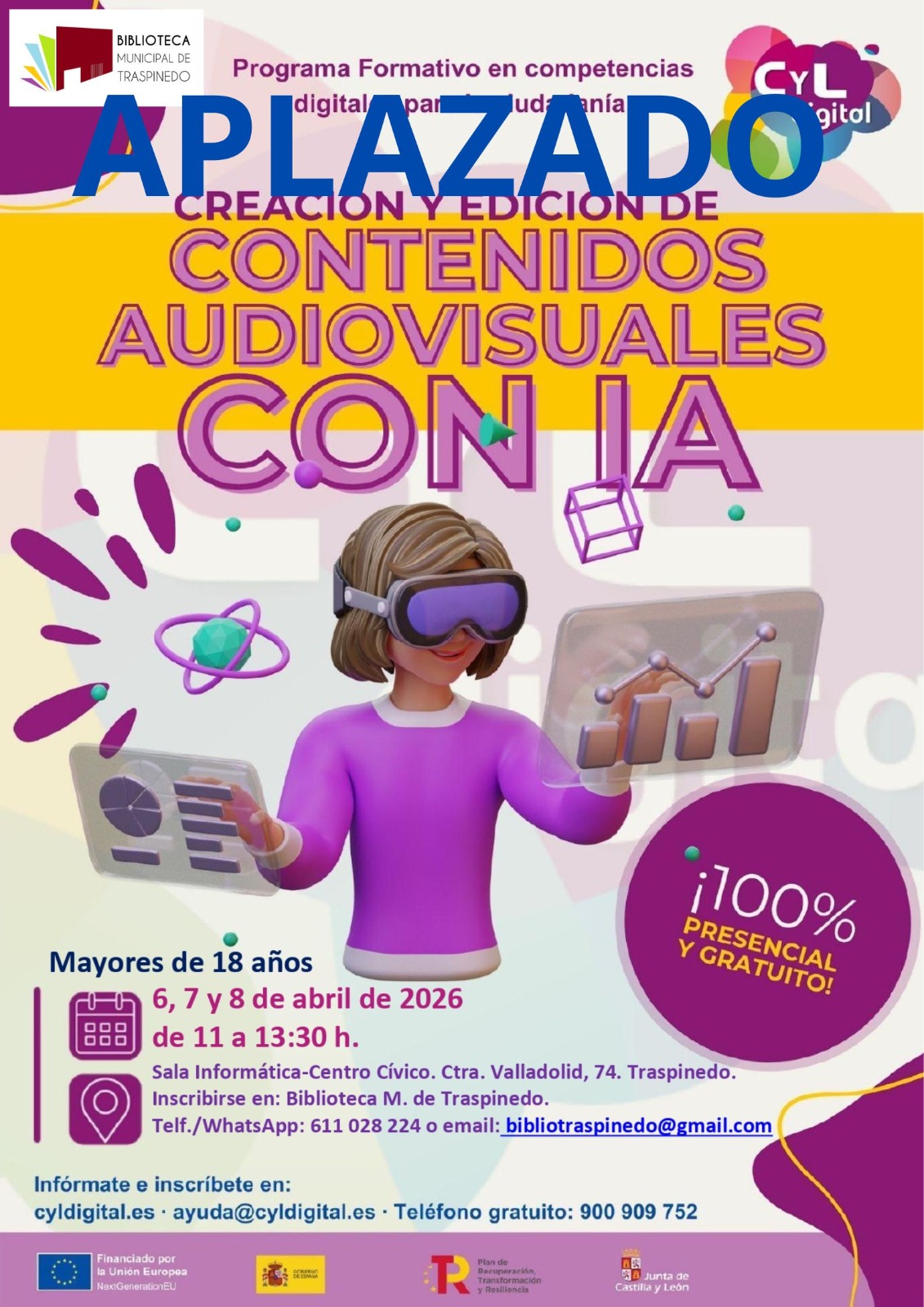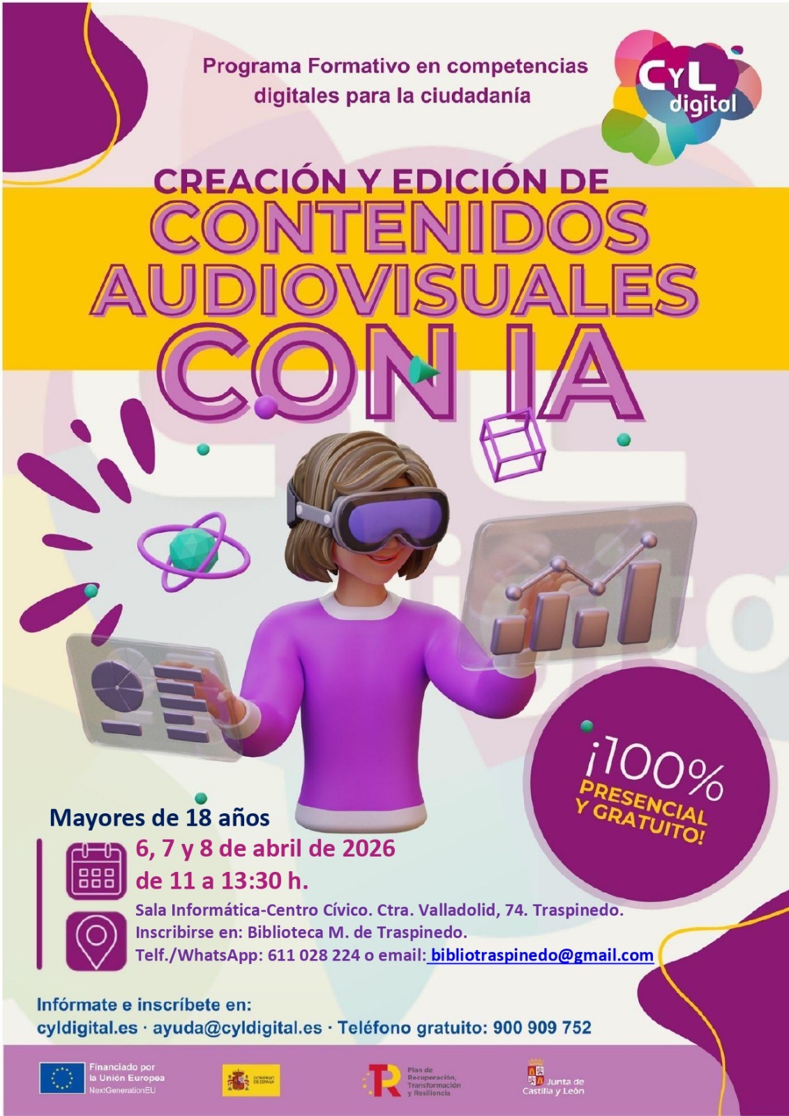🔰📲💻 TALLER DE CREACIÓN Y EDICIÓN DE CONTENIDOS AUDIOVISUALES CON IA (6, 7 y 8 de abril, Sala Informática-Centro Cívico) 🔰📲💻