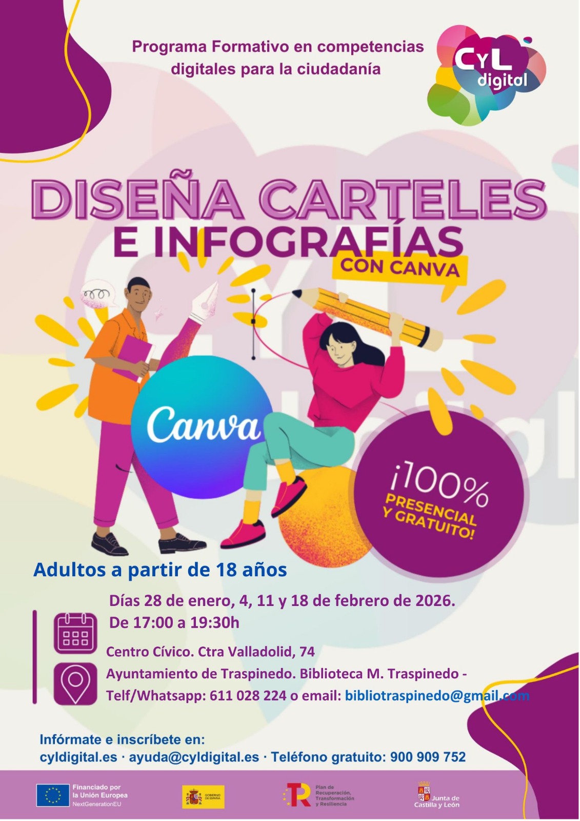 🔰📲💻 TALLER DE DISEÑO DE CARTELES E INFOGRAFÍA CON CANVA (28 de enero, 4, 11 y 18 de febrero, Centro Cívico) 🔰📲💻2026-01-20 19:28:46Info General