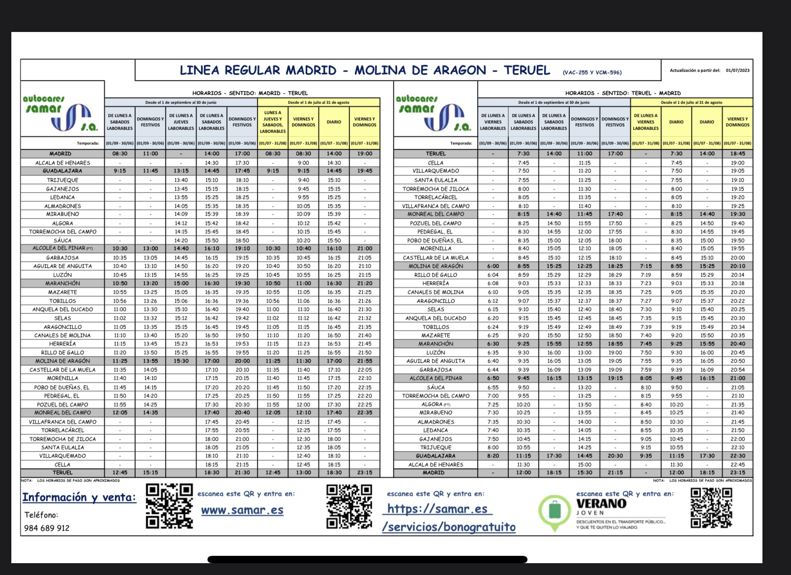 Nuevo horario de autobuses.
