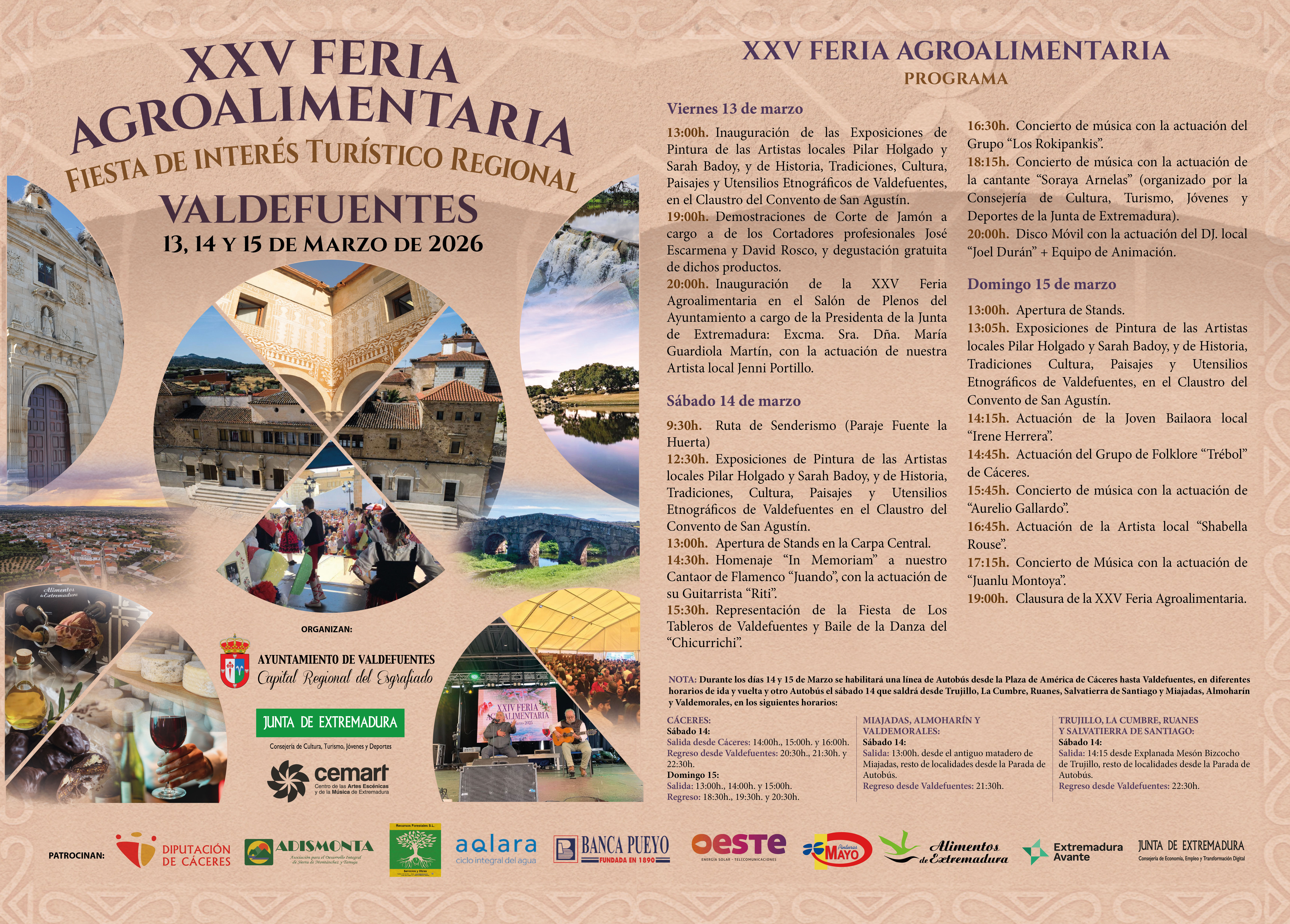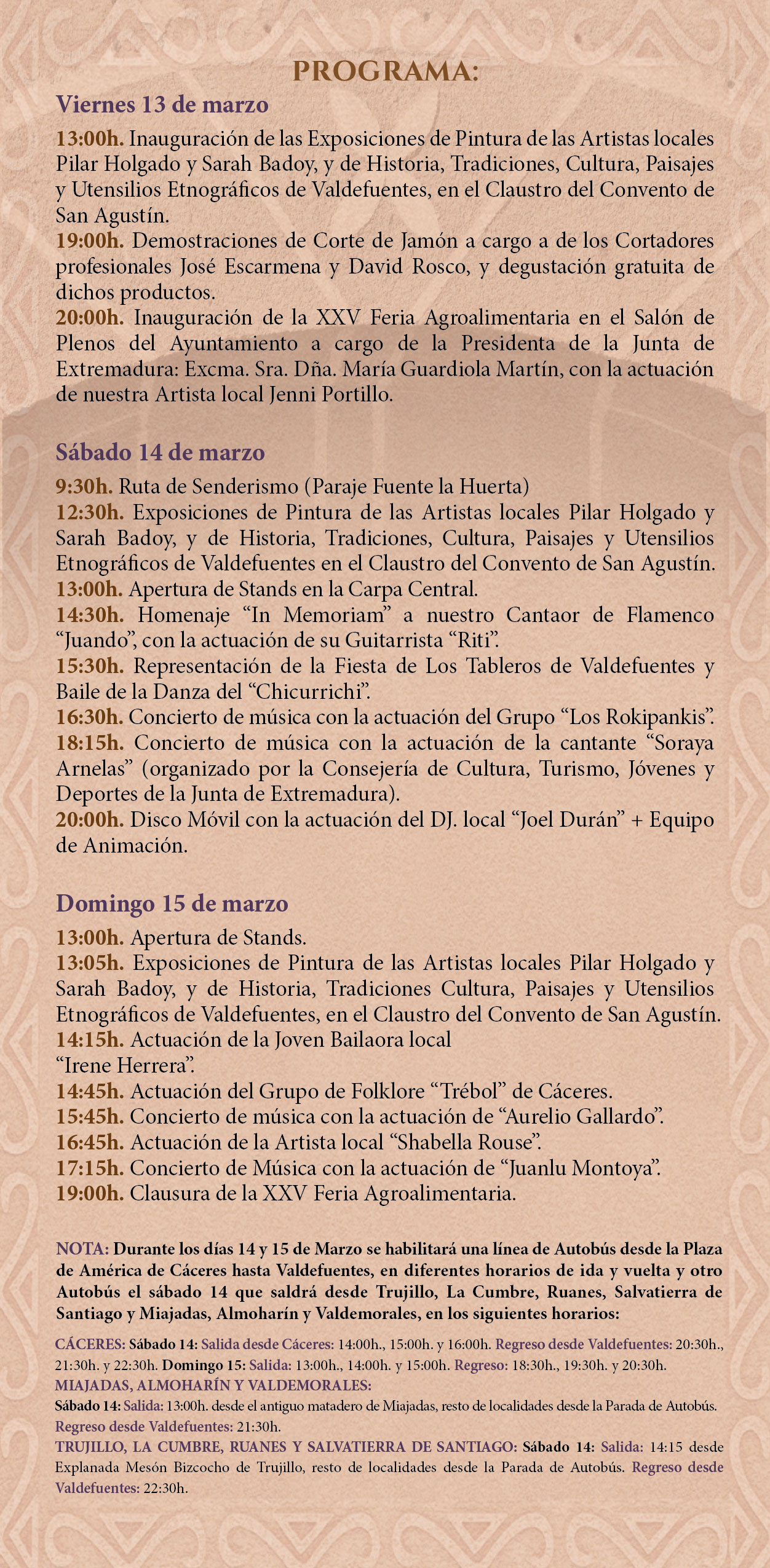 Se informa, que según comunicación recibida por parte de la Secretaría General De Interior, Emergencias y Protección Civil de la Junta de Extremadura, se autoriza la ampliación de los horarios de cierre de todos los establecimientos esta localidad con motivo de la celebración de la XXV Feria Agroalimentaria los días 13, 14 y 15 de marzo de 2026, ampliándose dicho horario de cierre de todos los establecimientos de la localidad en DOS HOR(...)