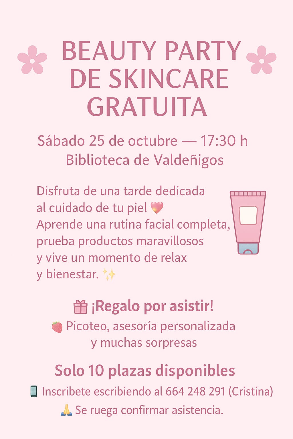 Se comunica que la reunión informativa para el cuidado de la piel, maquillaje etc se cambia del sábado al domingo día 26