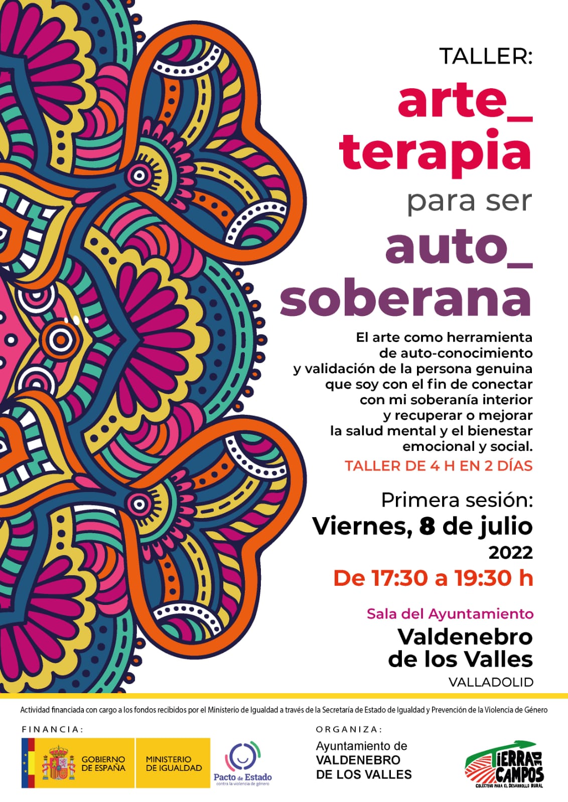 El día 08/07/22 taller de arte terapia para adultos de 17:30 a 19:30 en el salón multiusos.