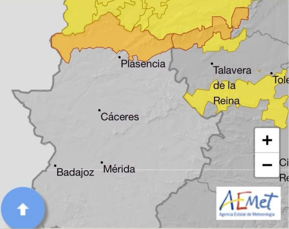 Igualmente, la Delegación Gobierno Extremadura-Unidad Protección Civil. AVISOS FEN. MET. ADVERSOS remitidos por la AEMET de nivel AMARILLO PARA HOY (26/01/2025) y nivel NARANJA PARA MAÑANA (27/01/2025). FENOMENOS PREVISTOS: Fenom. 1: Lluvias. Precipitación acumulada en 12 horas: 60 mm. Nivel: AMARILLO. Ámbito geográfico: Cáceres (Norte). De 11:00 h. del 26/01/2025 a 00:00 h. del 27/01/2025. Probabilidad: 40%-70%. - - - Fenom. 2: Lluvias. Precipitación acumulada en 12 horas: 80 mm. Nivel: NARANJA. Ámbito geográfico: Cáceres (Norte). De 00:00 h. a 06:00 h. del 27/01/2025. Probabilidad: 40%-70%.