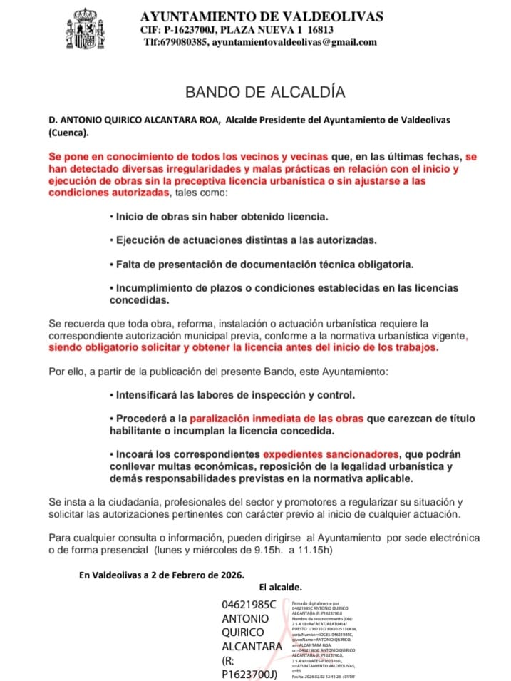 Se pone en conocimiento de todos los vecinos y vecinas que, en las últimas fechas, se han detectado diversas irregularidades y malas prácticas en relación con el inicio y ejecución de obras sin la preceptiva licencia urbanística o sin ajustarse a las condiciones autorizadas, tales como: