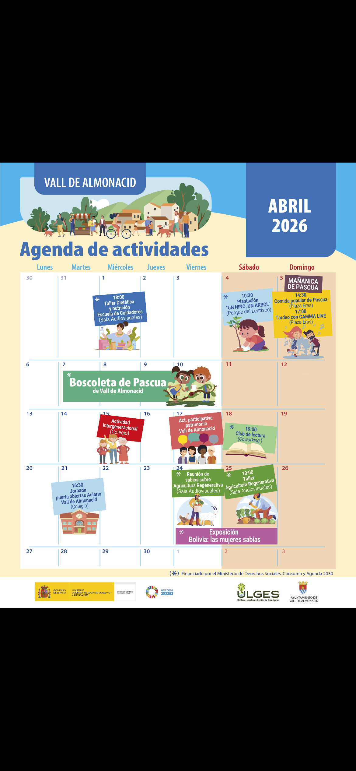 Se informa a todos los vecinos de que ya está disponible la agenda de actividades actualizada para el mes de abril de 2026.
