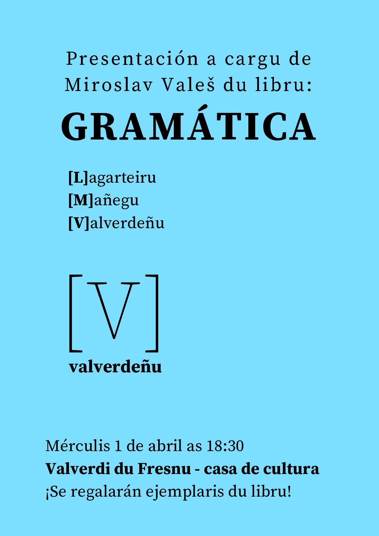 Esti merculis 1 de abril, en a Casa de Cultura, as 18:30h se presentará u estudiu sobre gramática feitu por Miroslav Vales (profesor de filología).