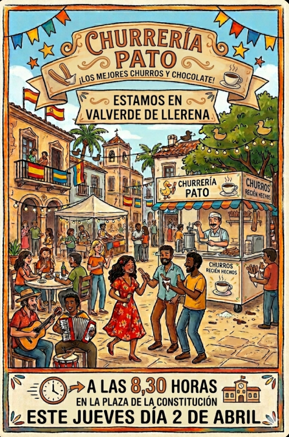 Les informamos que la Churreria Pato, estará el sábado 3 de Enero, con el puesto de churros en la Plaza de la Constitución a partir de las 8,00 horas.