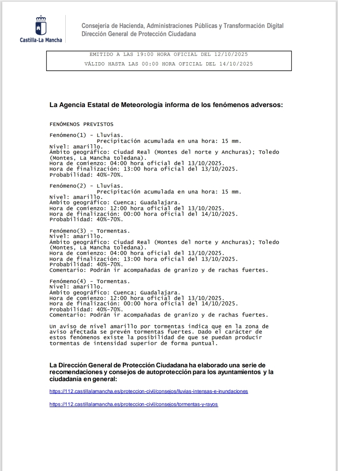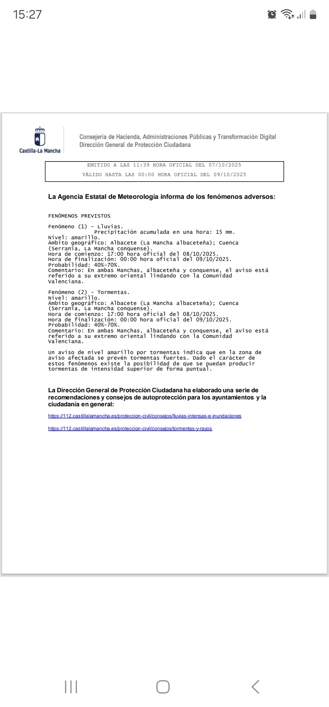 Comentario: En ambas Manchas, albaceteña y conquense, el aviso es(...)
