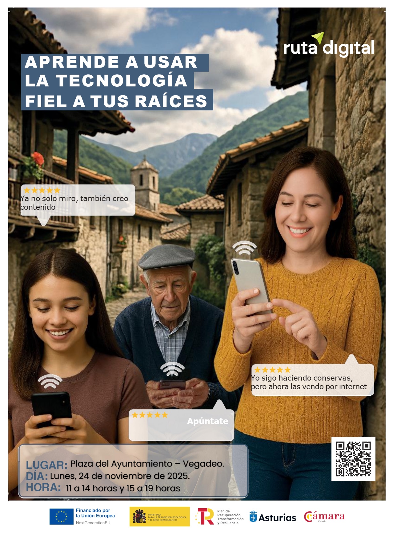 El programa Ruta Digital Asturias estará en Vegadeo el lunes 24 de noviembre, en la Plaza del Ayuntamiento, en horario de 11:00 a 14:00 y de 15:00 a 19:00 horas.