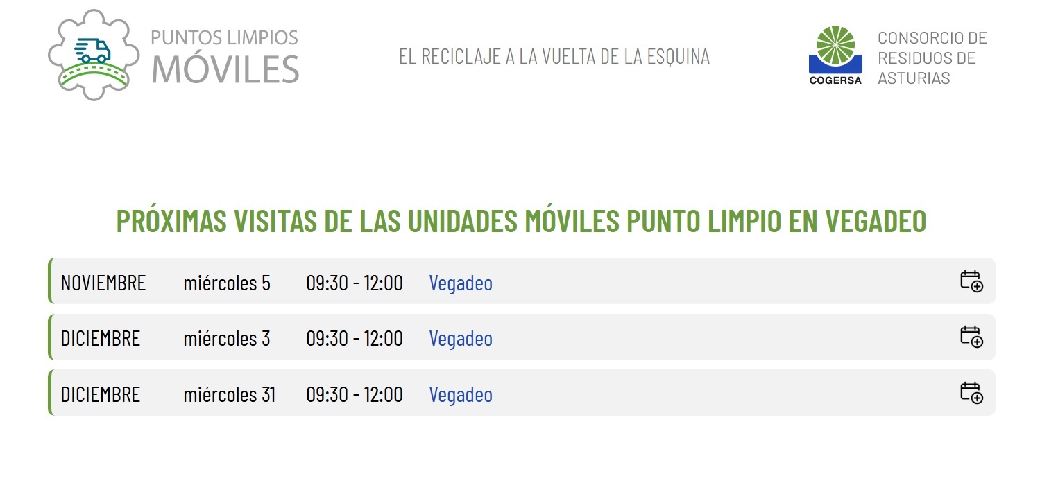 PRÓXIMAS VISITAS DE LAS UNIDADES MÓVILES PUNTO LIMPIO EN Vegadeo