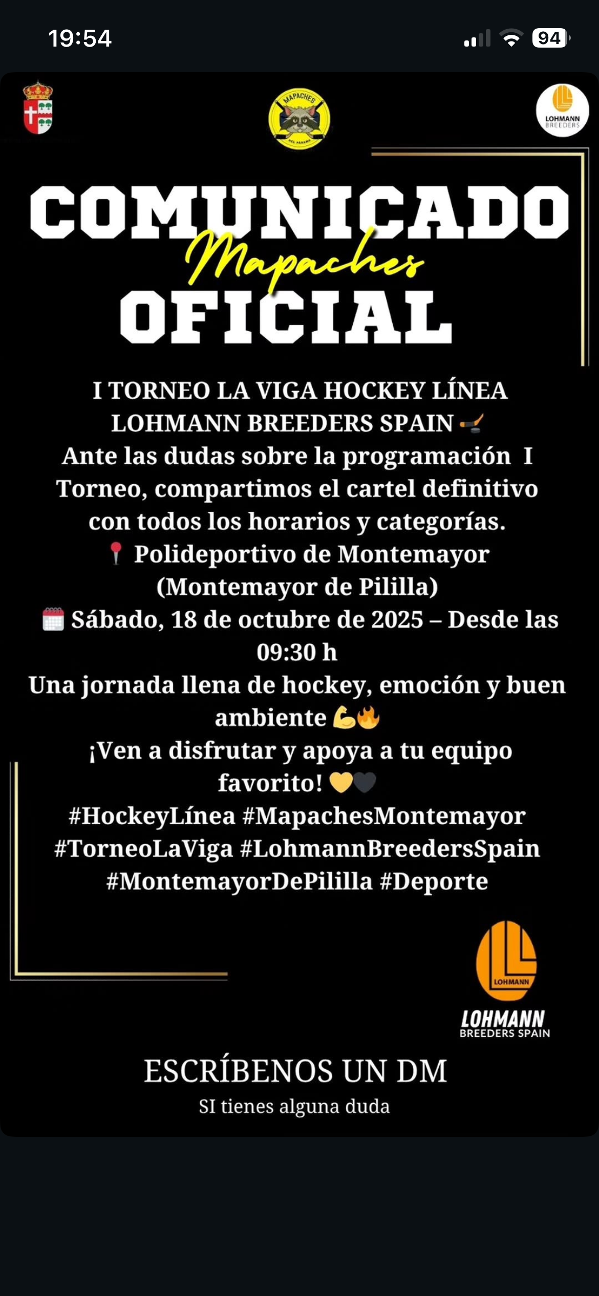 Sábado 18 de Octubre -I Torneo de Hockey línea La Viga Lohmann Breeders Spain2025-10-17 19:34:05Deporte