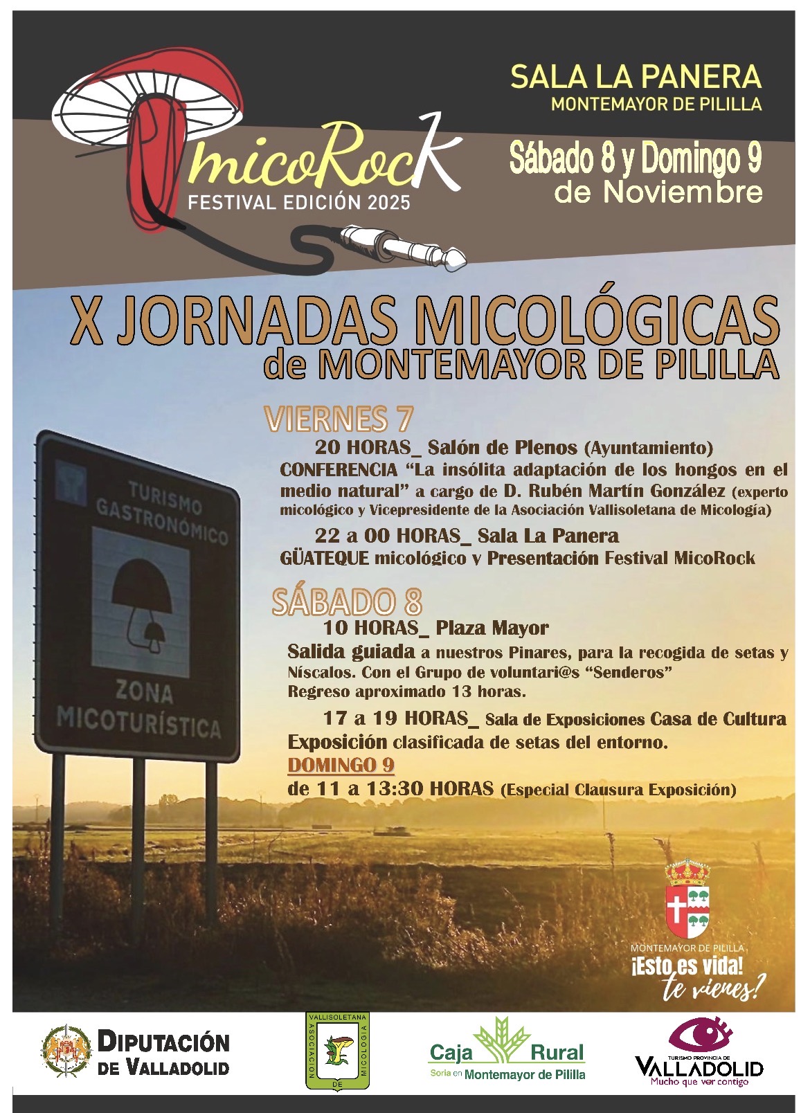 Sábado 8 - De 17 a 19 horas - Apertura Exposición de Setas2025-11-08 16:19:29Medio AmbienteTras la fantástica salida al campo con solillo de esta mañana, Hoy Sábado 8 - De 17 a 19 horas será la Apertura de la Exposición clasificada de setas del entorno, con más de 50 Setas diferentes. En la Sala de Exposiciones de la Casa de Cultura.