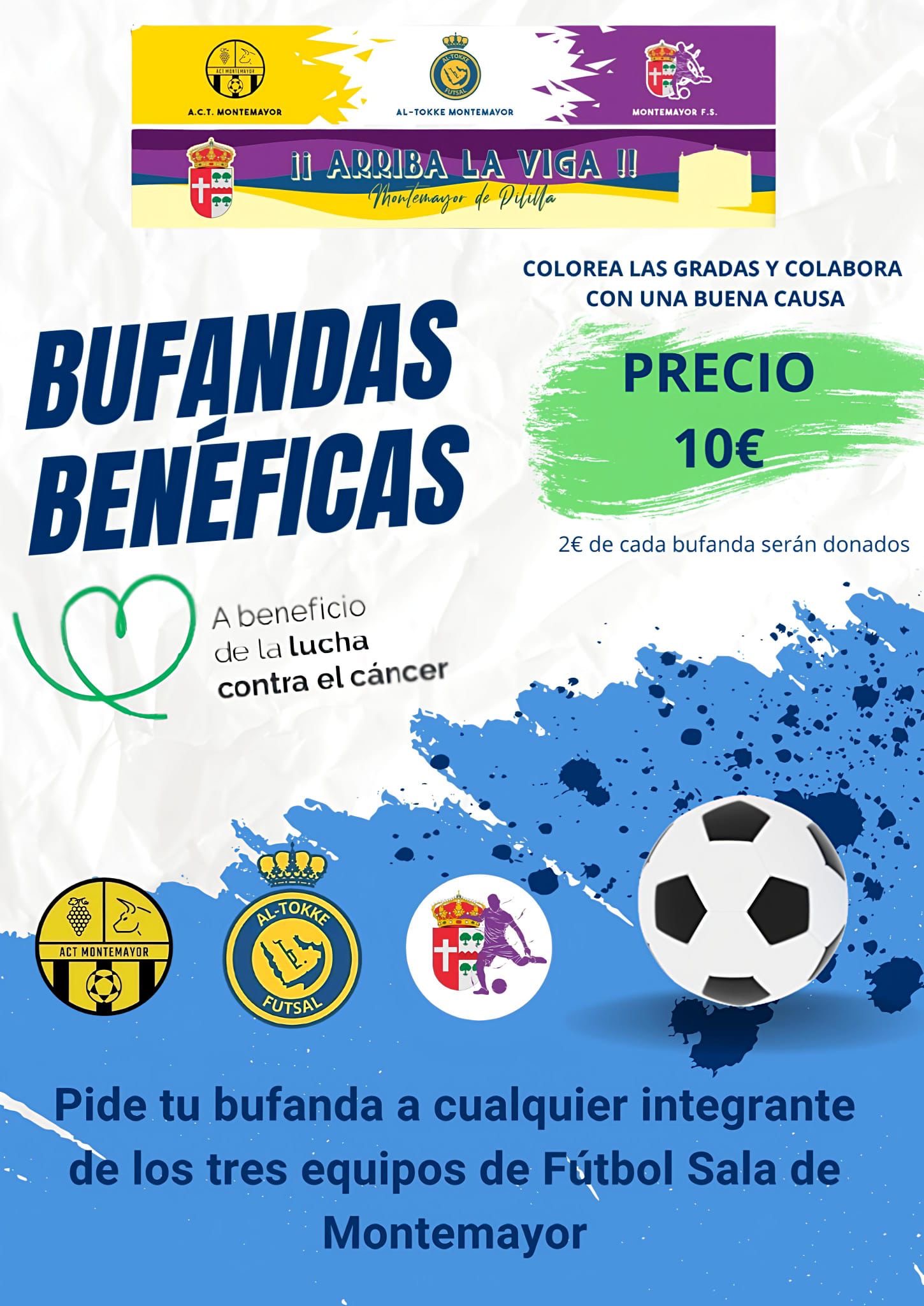 Bufandas benéficas en Montemayor a favor de la AECC2025-11-24 20:49:44AsociacionesACT Montemayor, Al Tokke Montemayor y Montemayor FS, nos unimos para lanzar estas bufandas con las que queremos dar representación a los tres equipos de fútbol sala del pueblo. 💪🏻