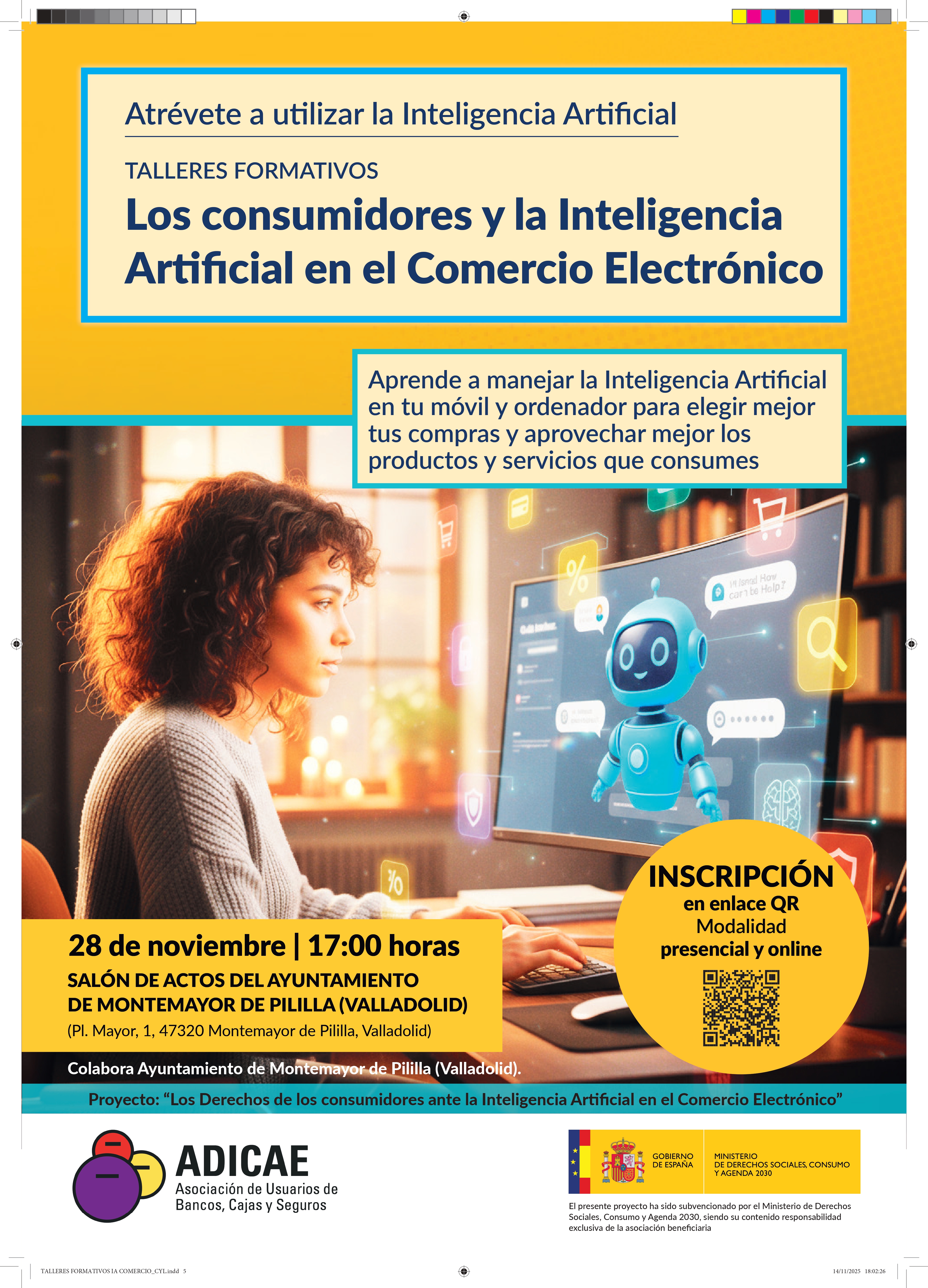 Viernes 28 a las 17 horas: Taller formativo - Charla sobre Inteligencia Artificial y Comercio por internet2025-11-26 15:04:13Info GeneralRecordamos que este Viernes 28 a las 17 horas, en el Salón de Plenos del Ayuntamiento, se llevará a cabo un Taller formativo - Charla sobre Inteligencia Artificial y Comercio por internet. Adjuntamos el Cartel con la información completa.