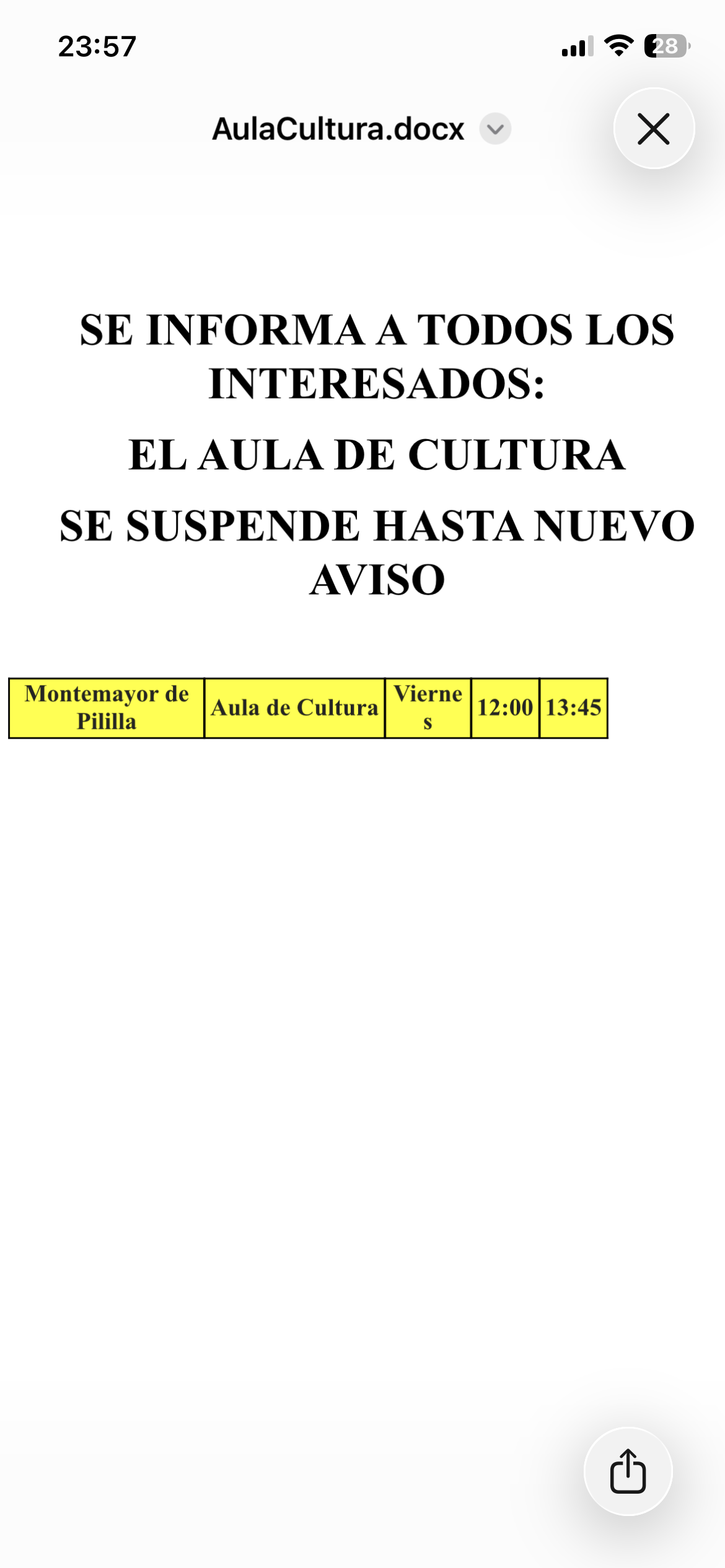 Se suspende el Aula de Cultura de Diputación hasta nuevo aviso.