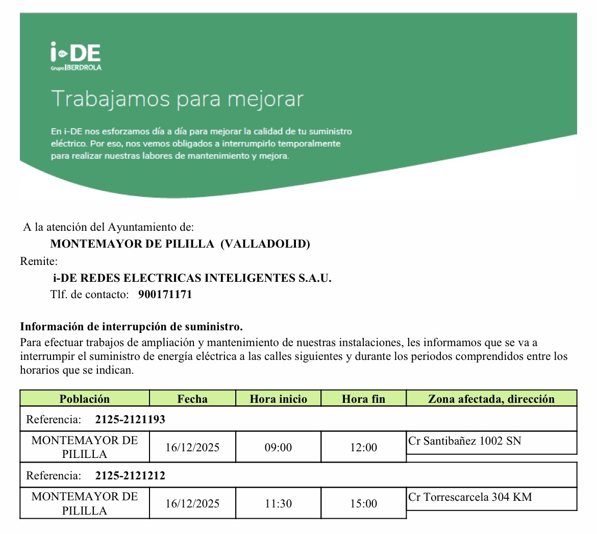 Nos avisan desde Iberdrola al Ayuntamiento que el