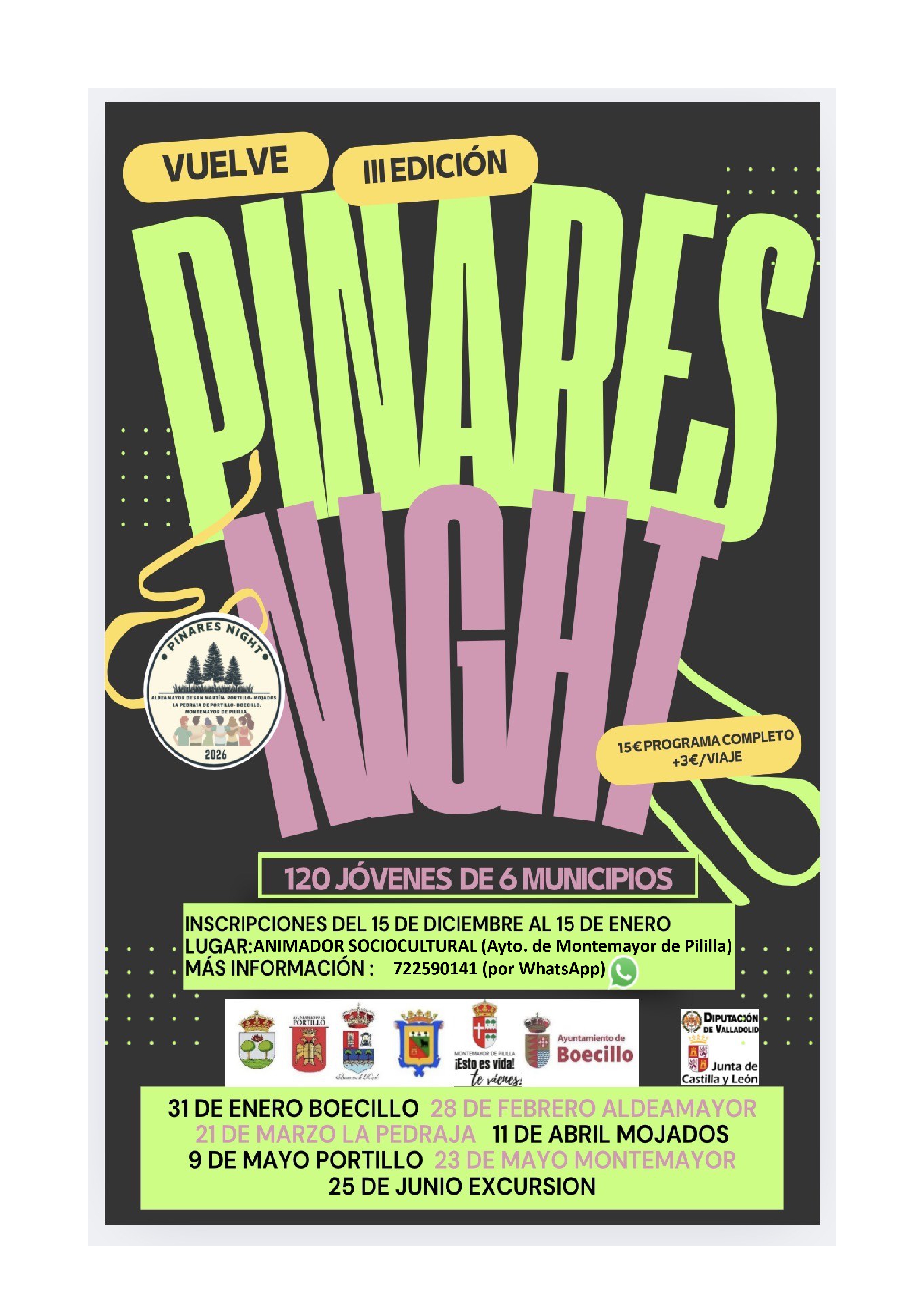 Vuelve PINARES NIGHT - Ediciones 2026 - Inscripciones desde el Lunes 152025-12-11 12:10:50JuventudY tras finalizar las Jornadas de Ocio Alternativo junto con San Miguel y Viloria, volvemos con más actividades juveniles: