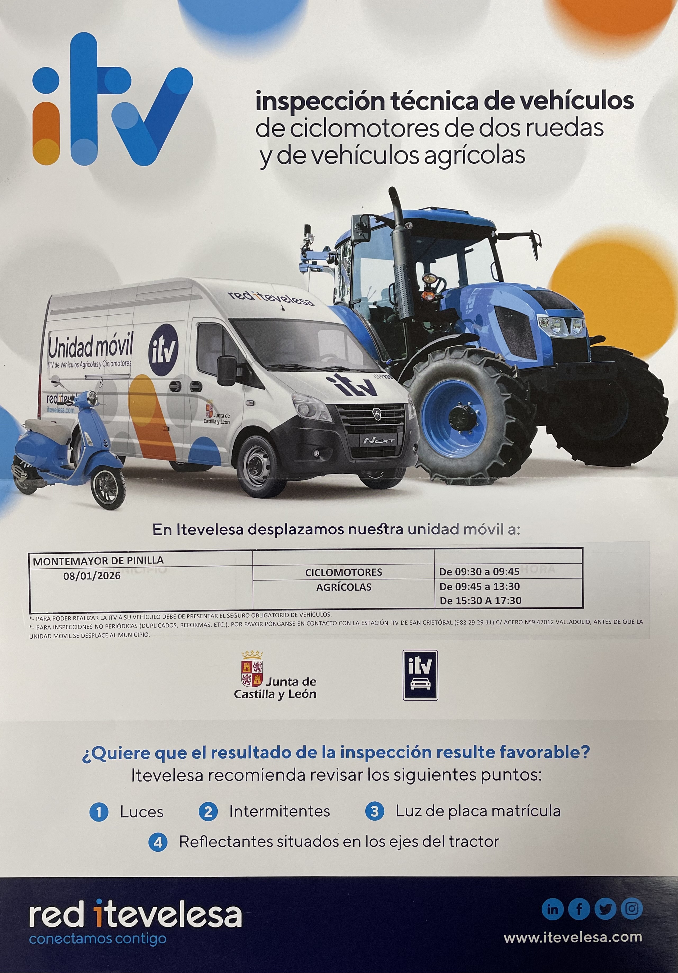 Jueves 8 de Enero - ITV en Montemayor2026-01-07 15:09:56Info GeneralMañana Jueves 8 de Enero en Horario de mañana y tarde llegará a Montemayor la Unidad móvil de ITV a Montemayor.