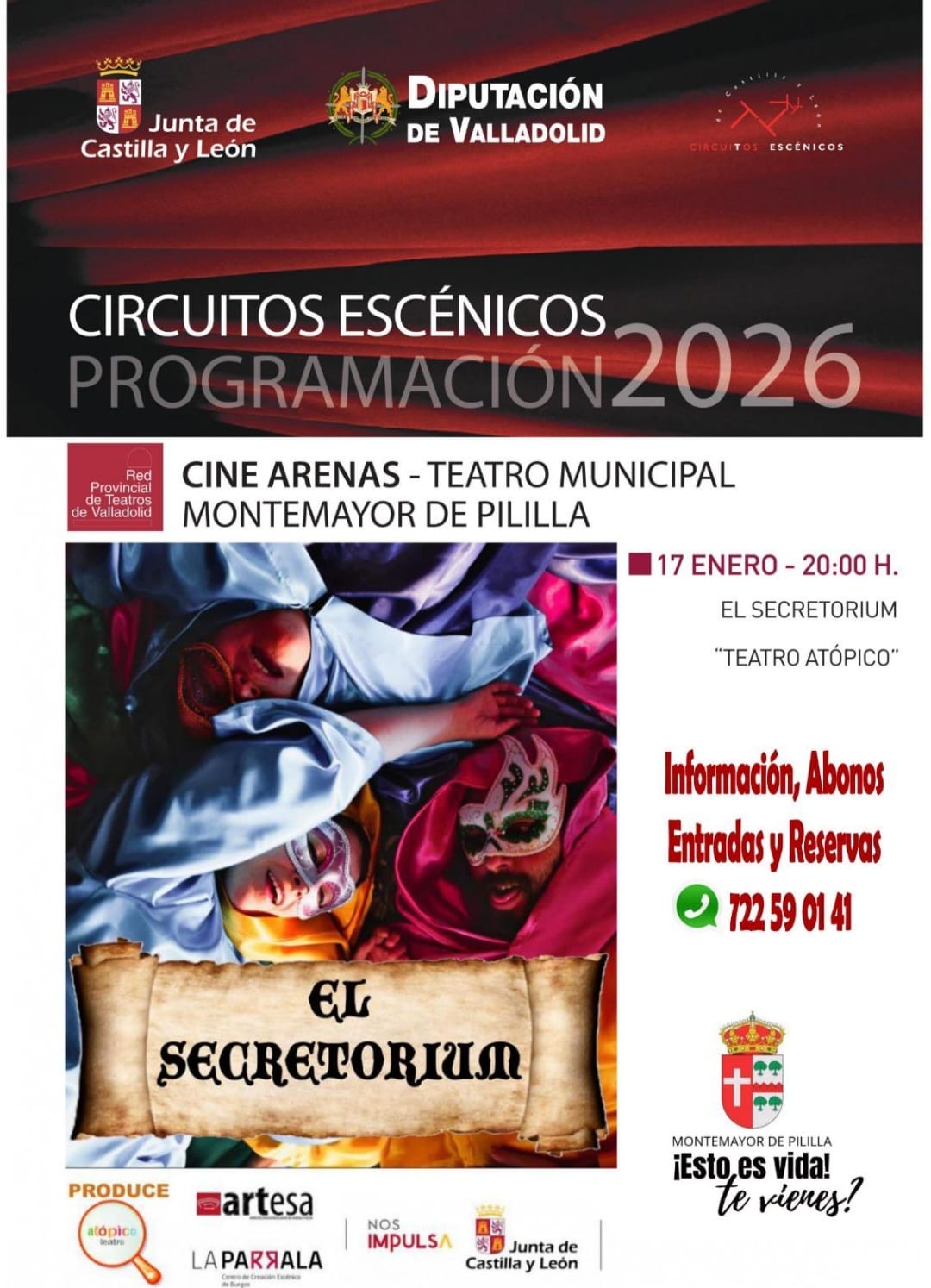 Esta tarde de Sábado 17 - 20 horas - Cine Arenas Teatro de humor “El Secretorium” de la Compañía Teatro Atópico.2026-01-17 17:33:53CulturaEsta tarde de blanco Sábado 17 a las 20 horas será la primera representación, con Teatro y el estreno en Cine Arenas - Teatro municipal de: