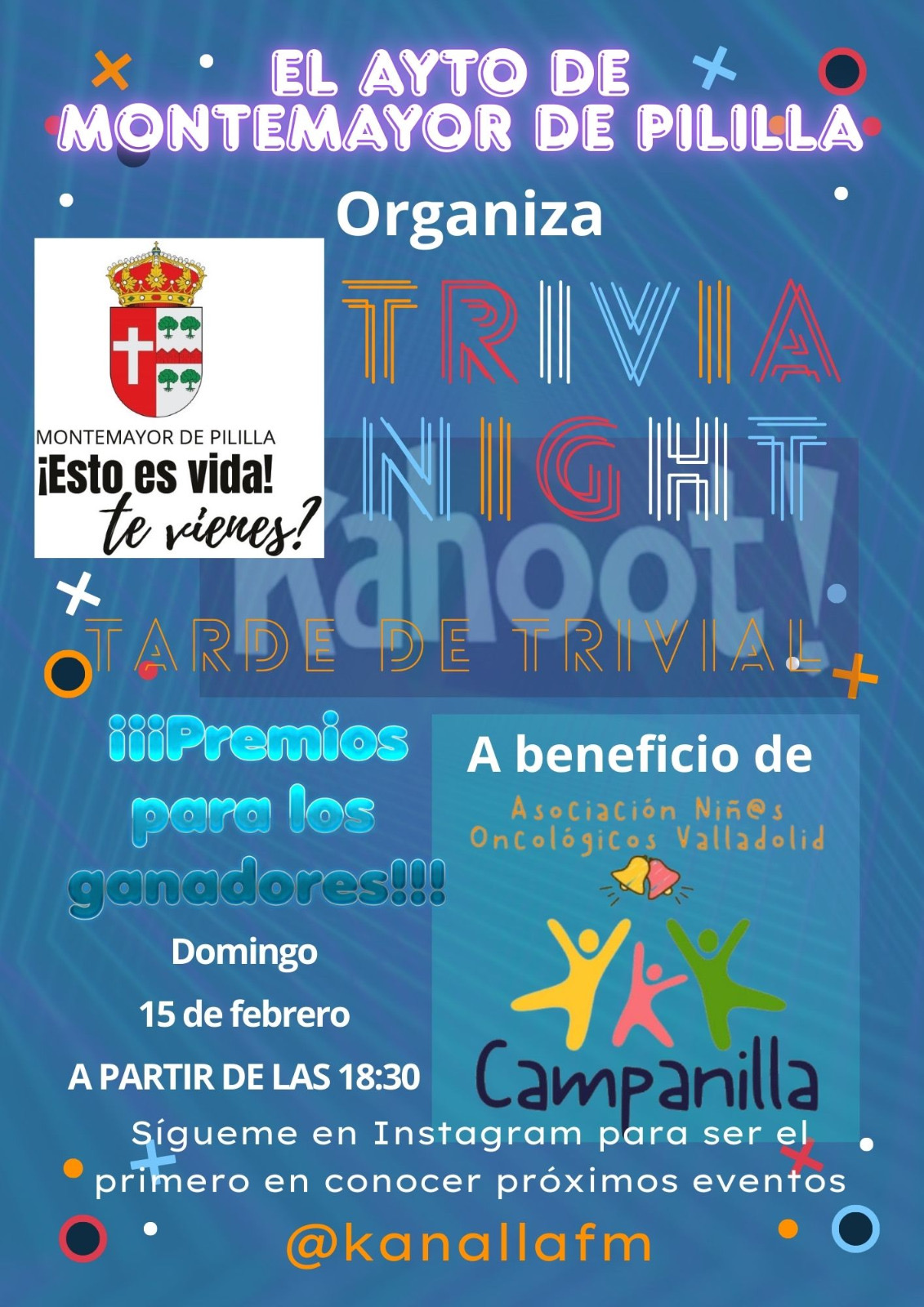 A las 18:30 llega el momento más divertido con el Juego y Concurso “Tarde de Trivial”. un juego interactivo en pantalla, animado con humor, y para todos los públicos (menores acompañados) 2€/persona que será donado a la Asociación Campanilla a favor del Cáncer Ingantil