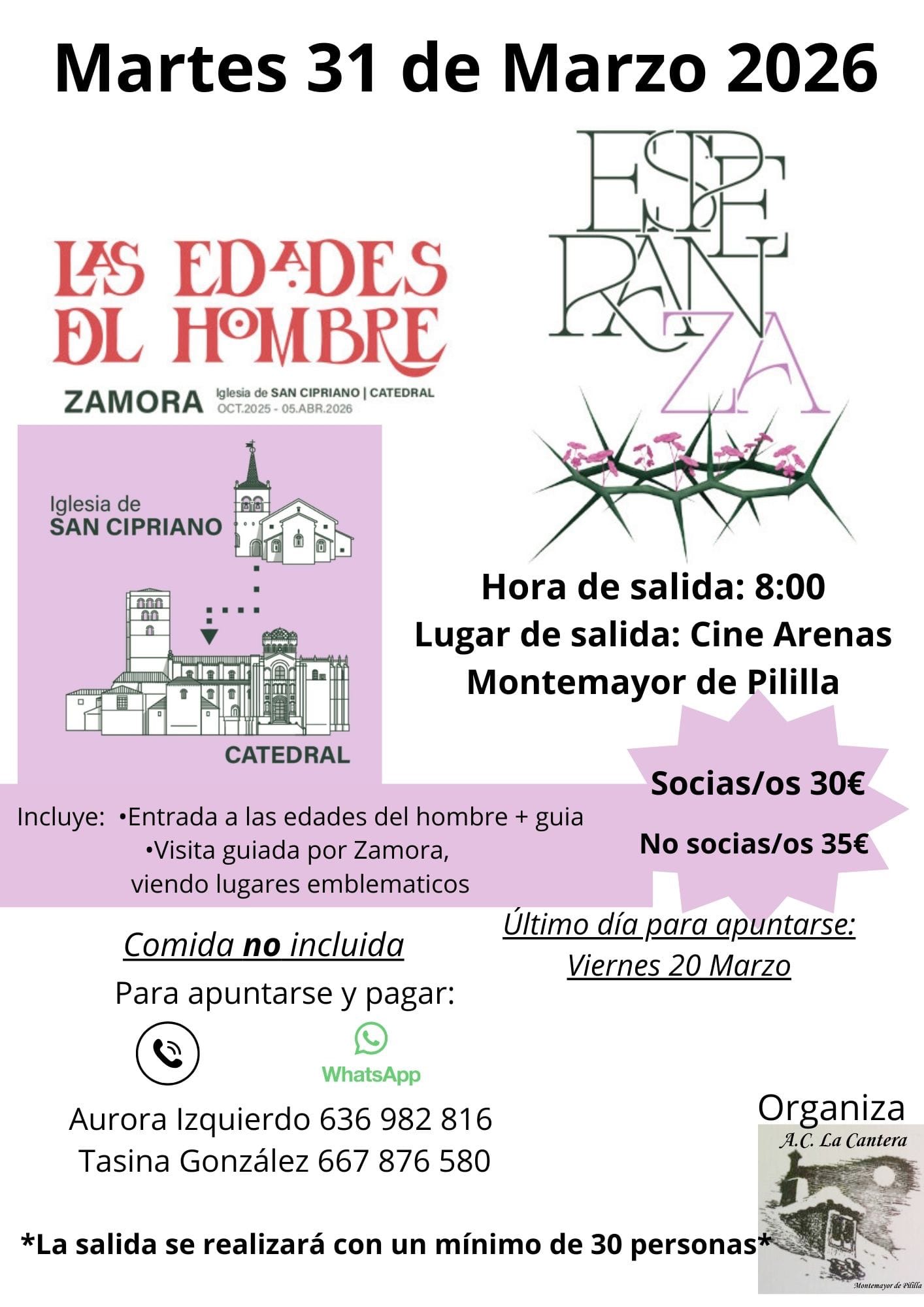 Excursión a “Las Edades del Hombre” - Asociación “La Cantera”2026-02-19 17:36:28AsociacionesContinuando sus actividades Culturales la Asociación “La Cantera” propone una Excursión muy especial, la visita a “Las Edades del Hombre”.
