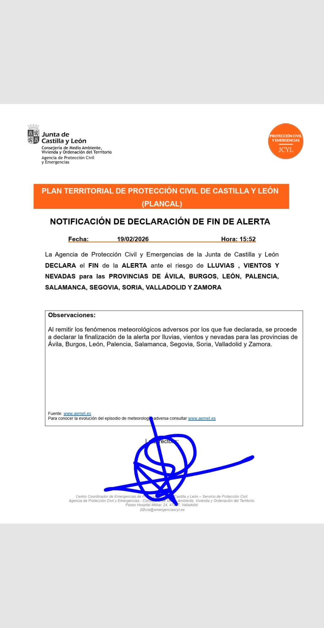 Fin de la ALERTA por lluvias, viento y nevadas.