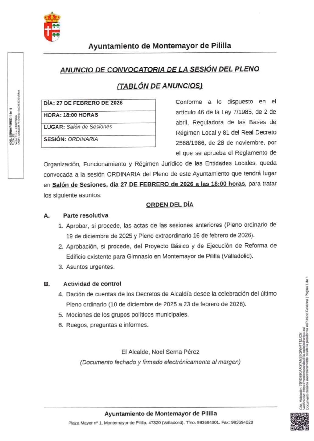 PLENO 27 DE FEBRERO A LAS 18:00