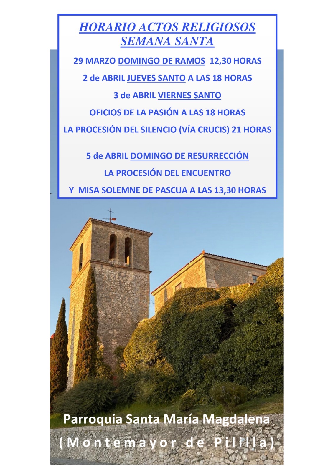 Horarios de Actos religiosos en Semana Santa