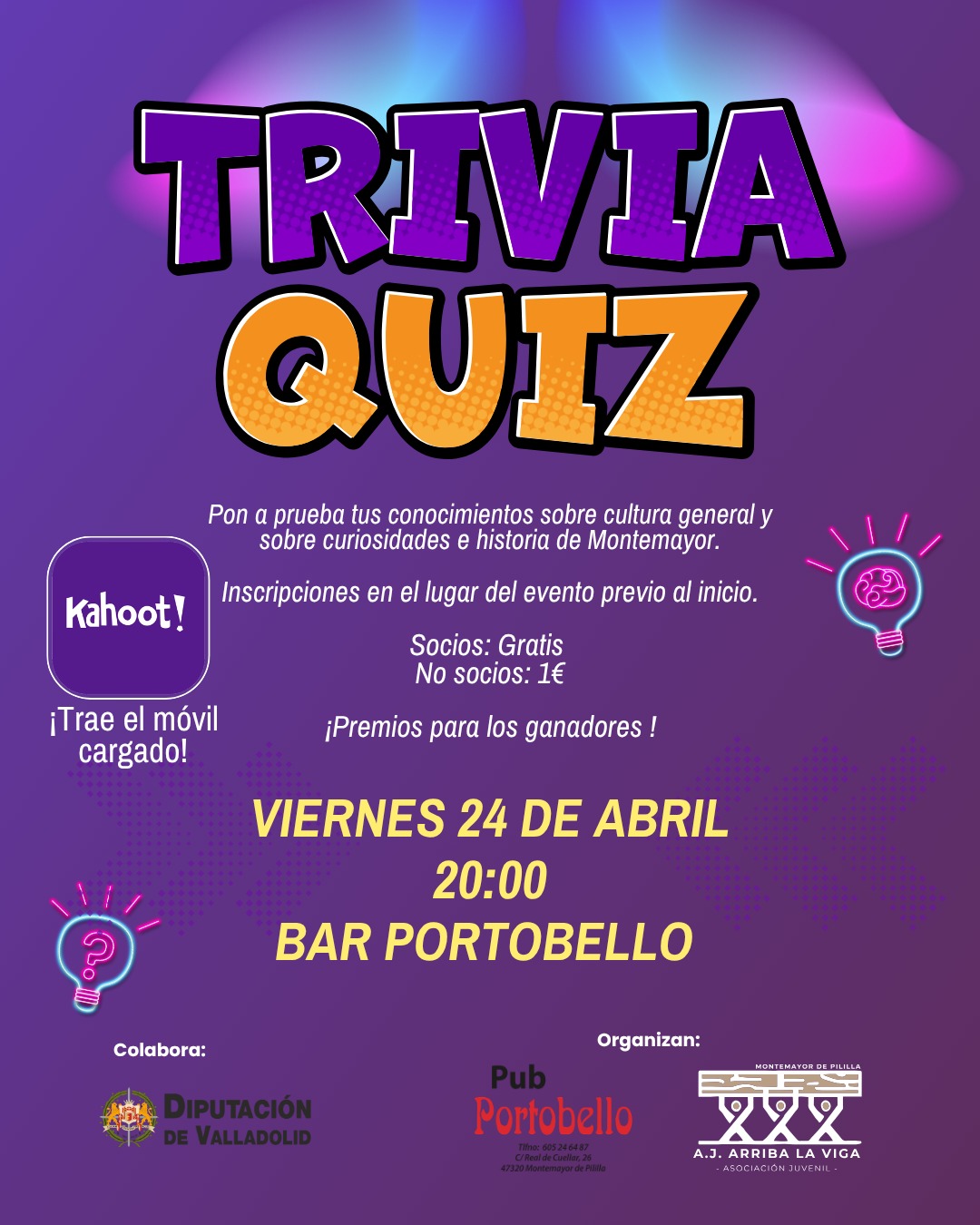 Este viernes 24 de abril a las 20:00 tenemos Trivial en el Bar Portobello.