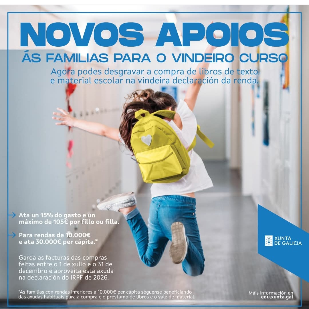 Novos apoios da Xunta de Galicia ás familias para o vindeiro curso.