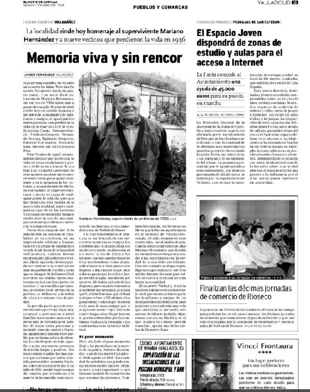 Los vecinos de Villabáñez pueden consultar gratuitamente la hemeroteca digital y en papel de El Norte de Castilla y buscar noticias, reportajes y fotografías antiguas del municipio y de sus gentes.
