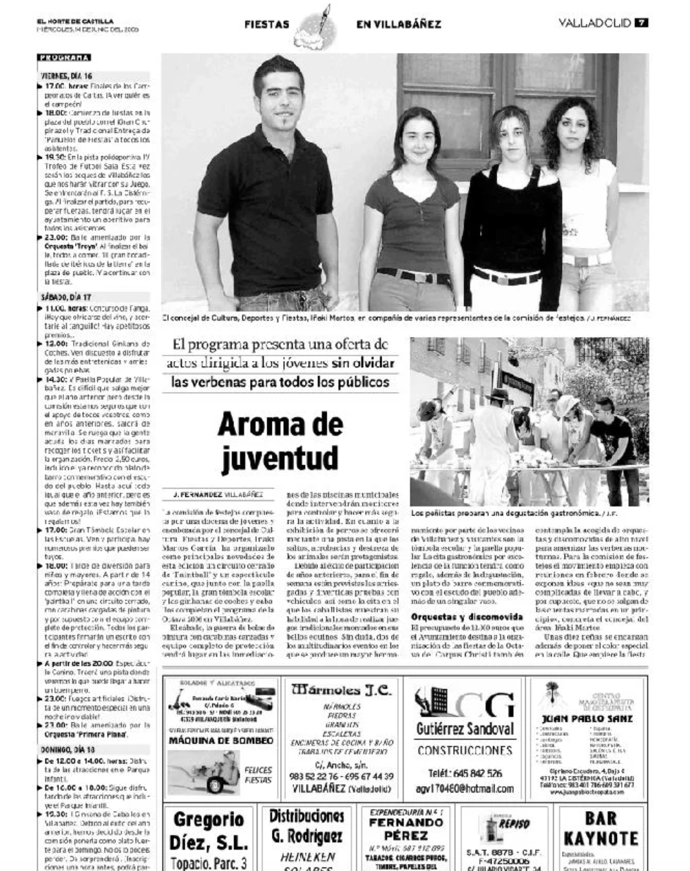 Reportajes sobre fiestas, peñas, obras municipales, agricultura y la vida cotidiana del pueblo en las últimas décadas.