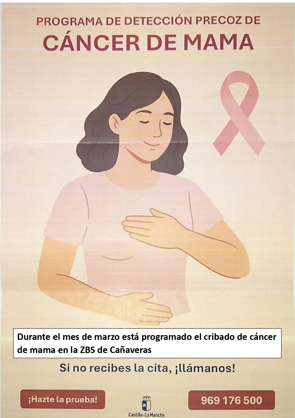La Consejeria de Sanidad está desarrollando el "Programa de Detección Precoz de Cáncer de Mama en la provincia de Cuenca realizando mamografias gratuitas que permitan detectar precozmente el cáncer de mama y así curarlo en unos casos, o asegurarles que están sanas a la mayoría.