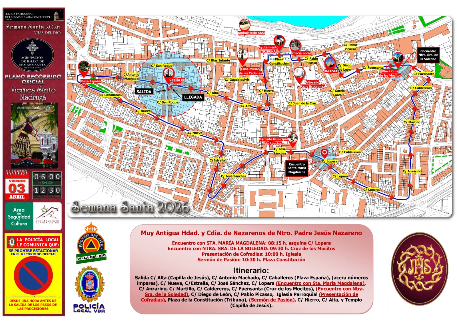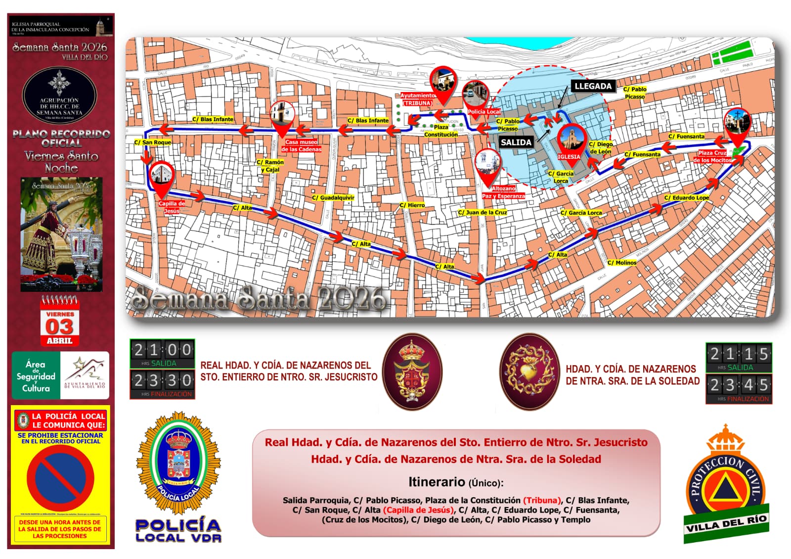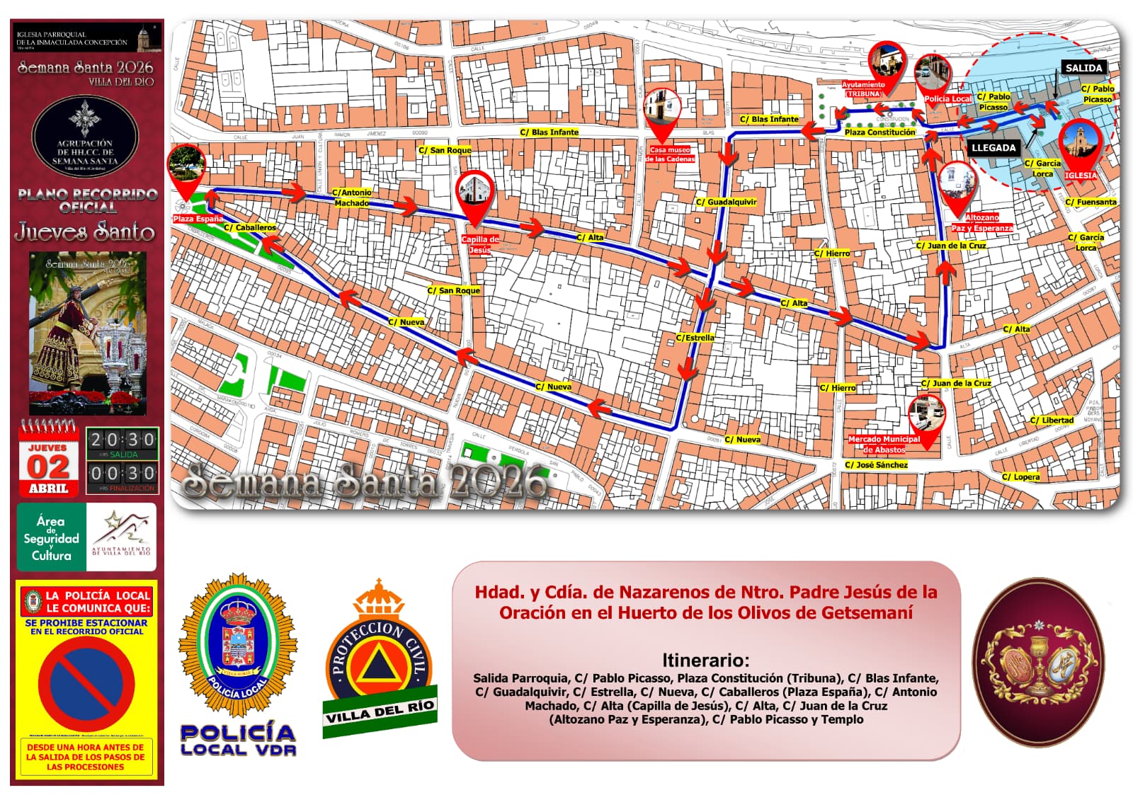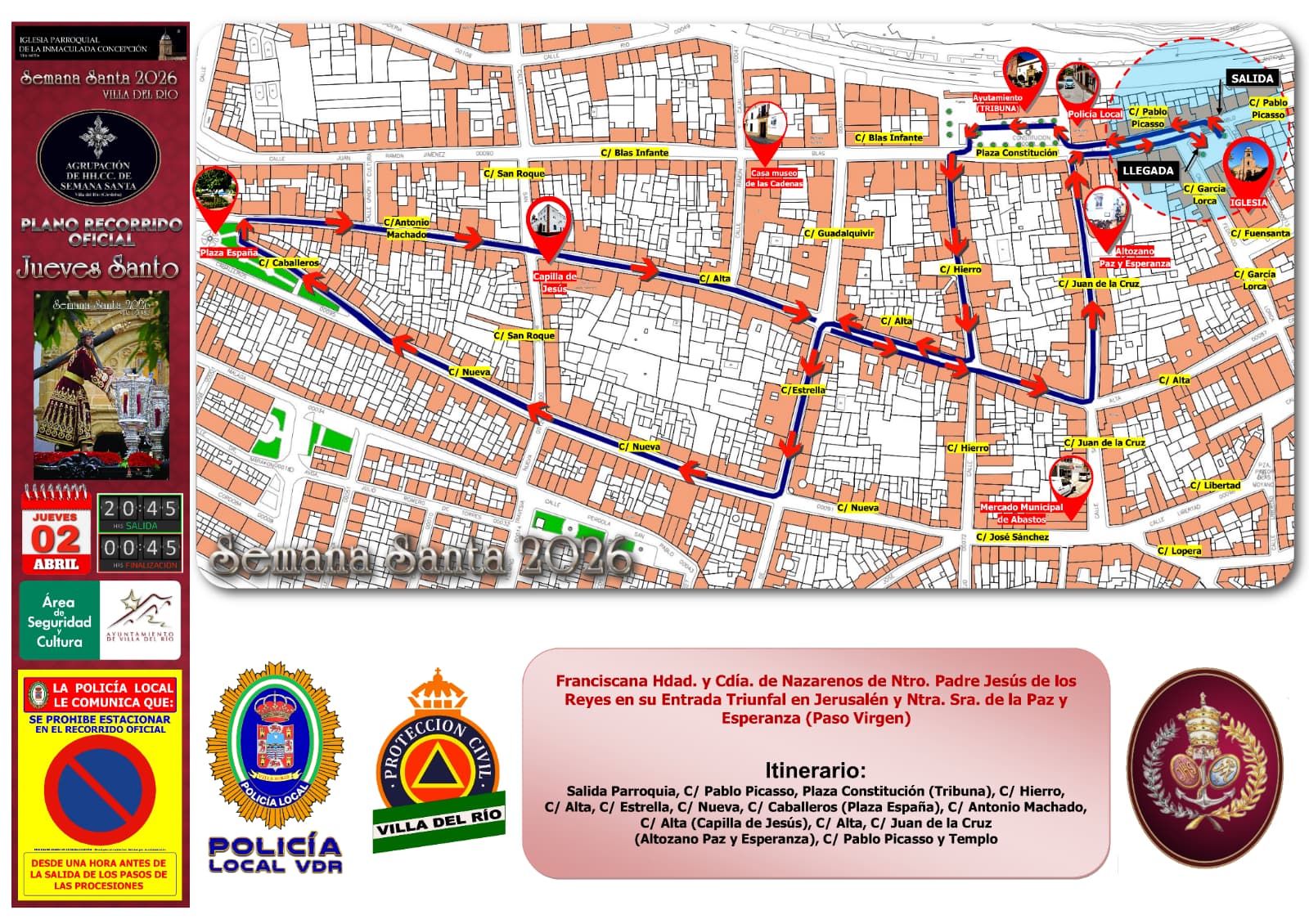 ITINERARIO DE LAS SALIDAS PROCESIONALES DEL JUEVES SANTO | SEMANA SANTA DE VILLA DEL RÍO 2026