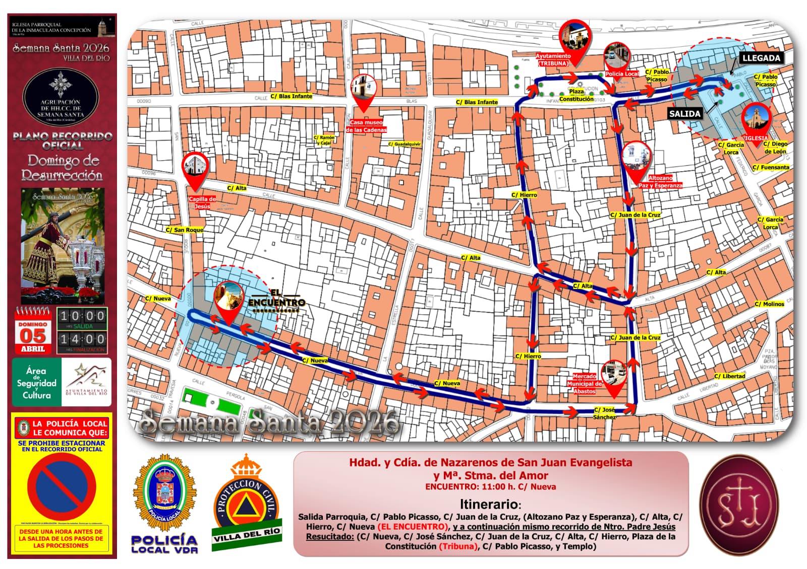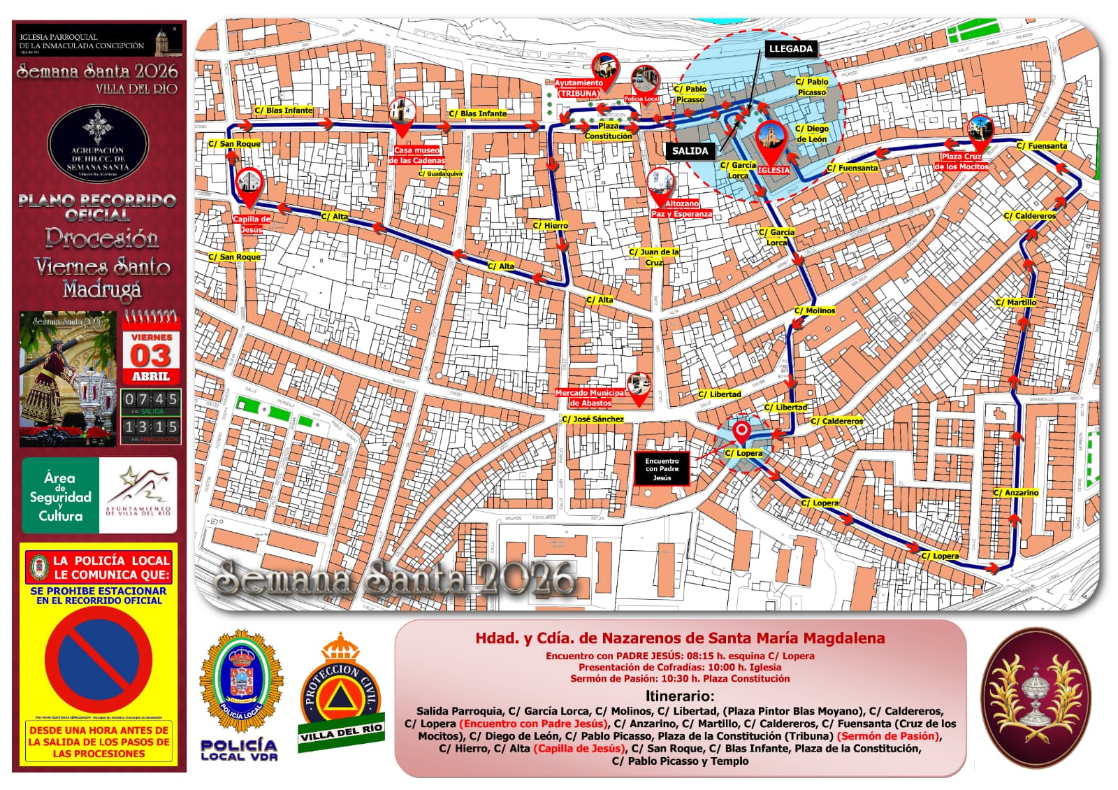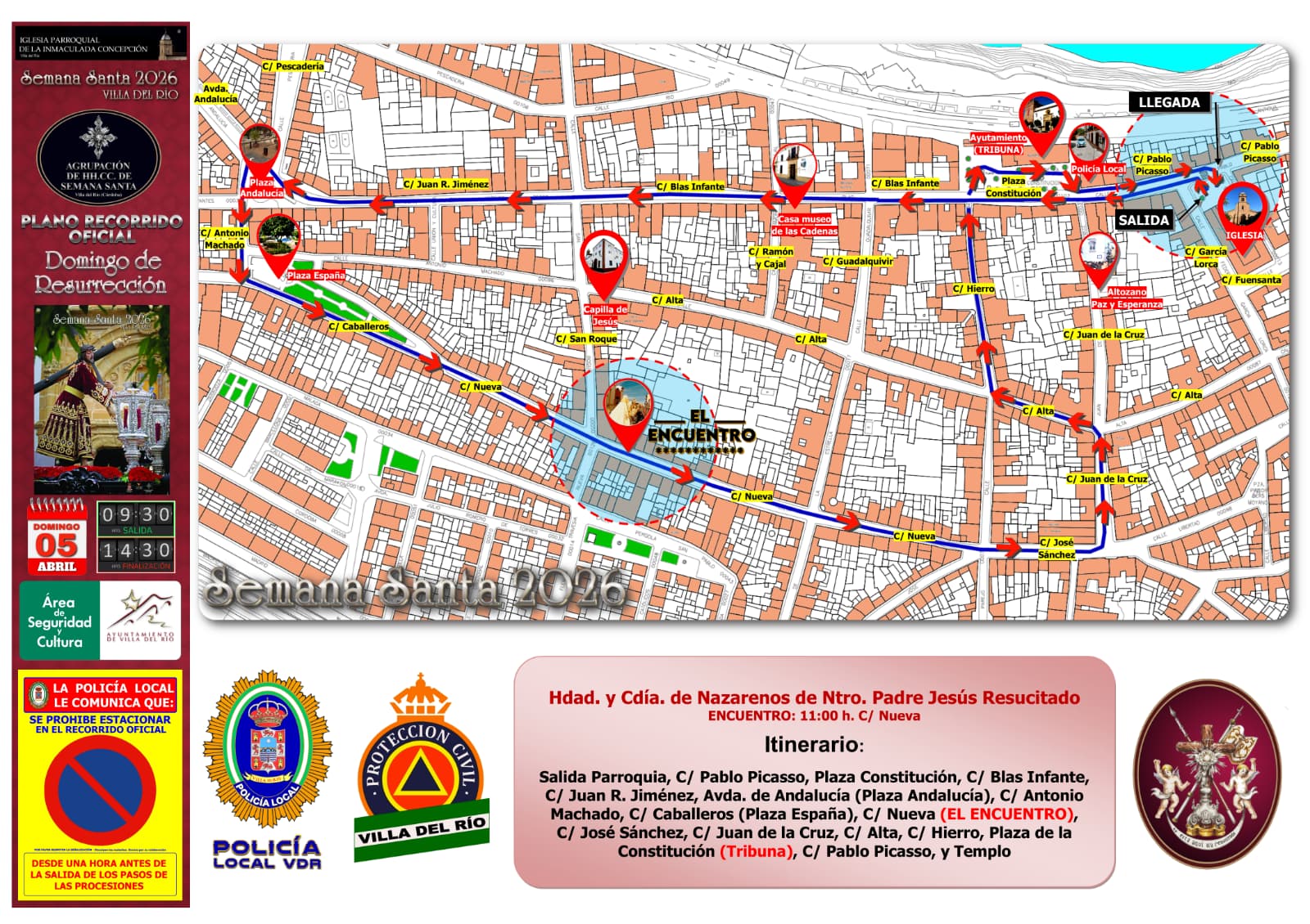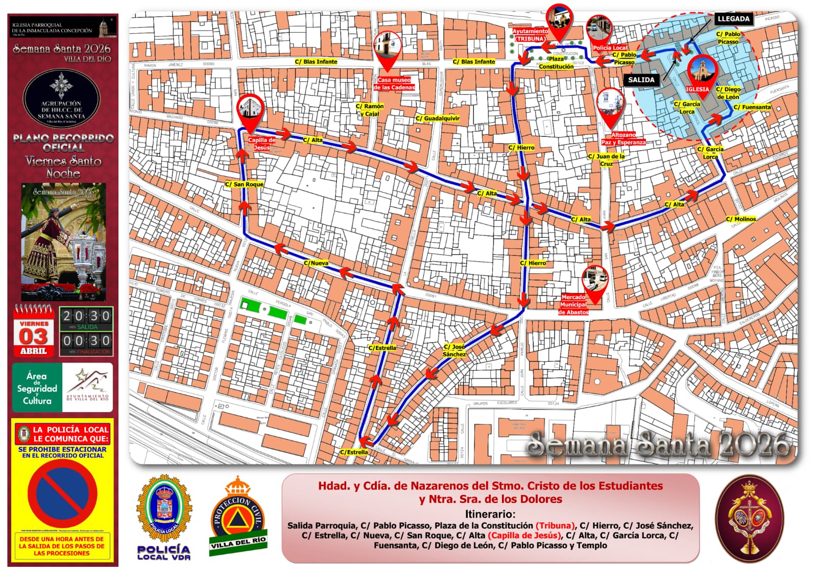 ITINERARIO DE LAS SALIDAS PROCESIONALES DEL JUEVES SANTO | SEMANA SANTA DE VILLA DEL RÍO 2026