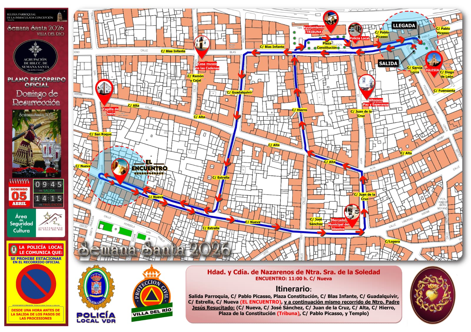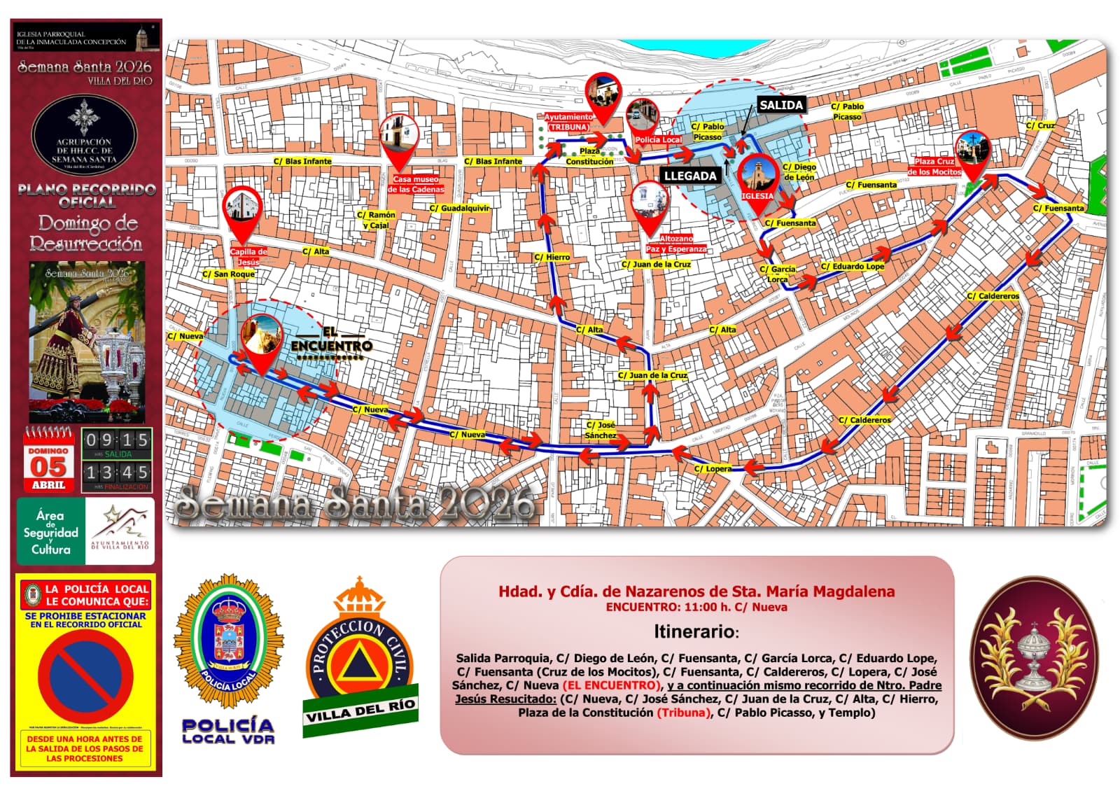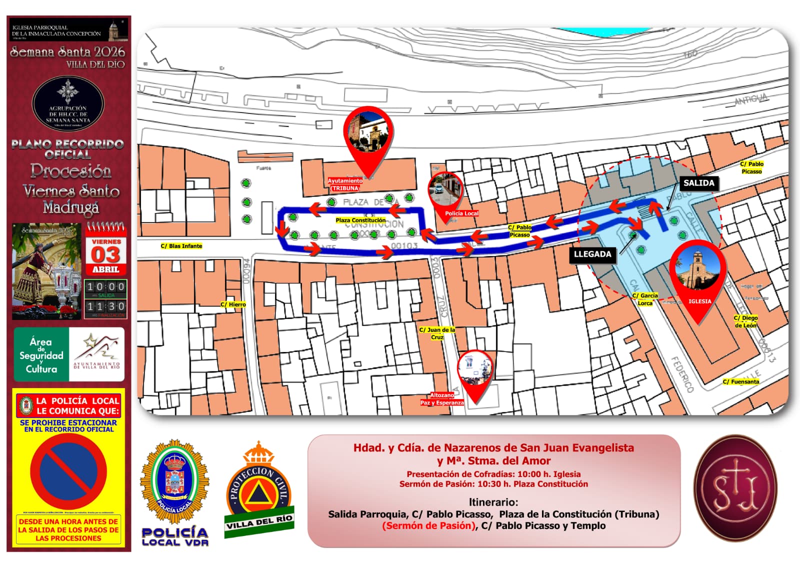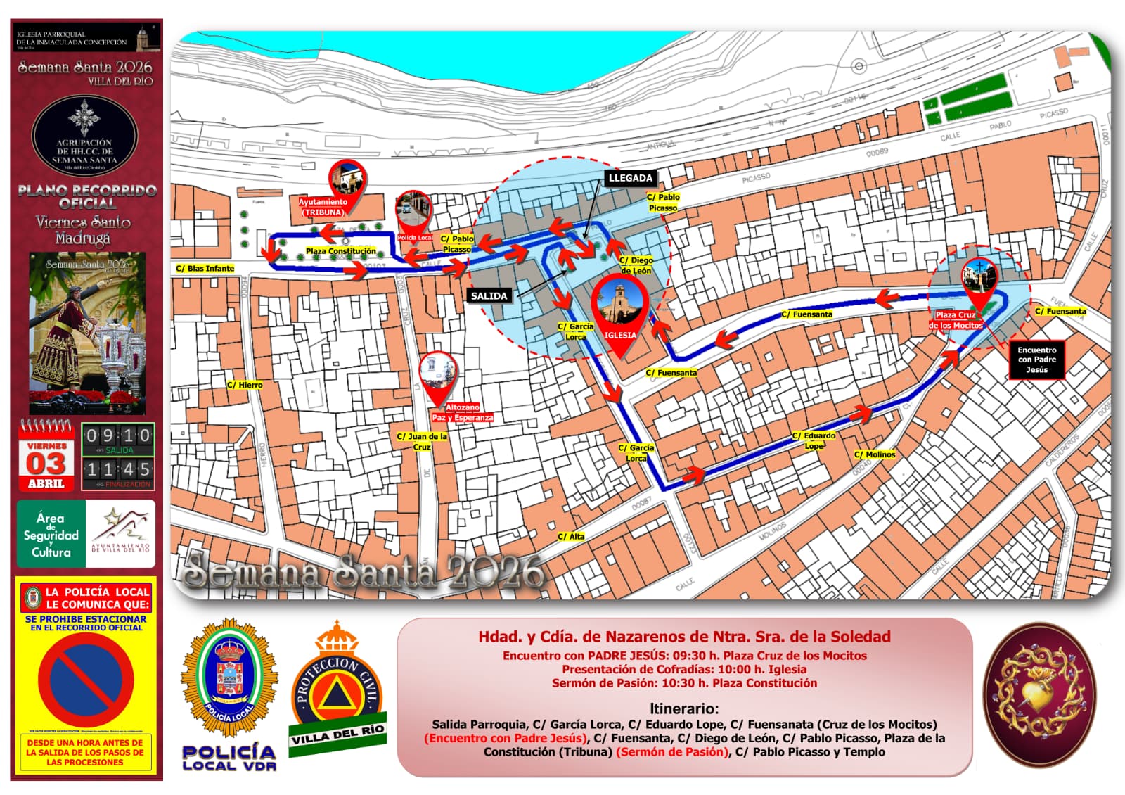 ITINERARIO DE LAS SALIDAS PROCESIONALES DEL JUEVES SANTO | SEMANA SANTA DE VILLA DEL RÍO 2026