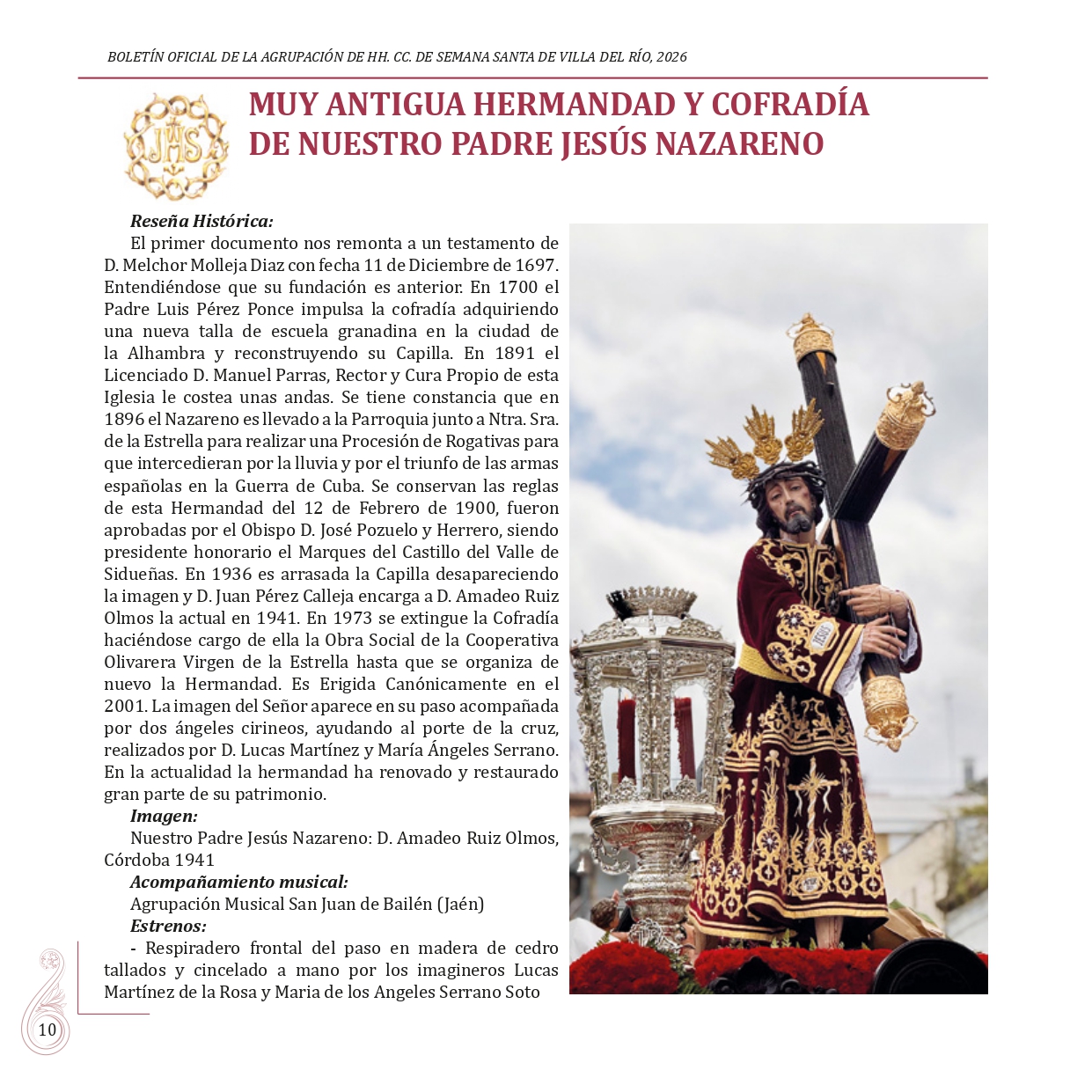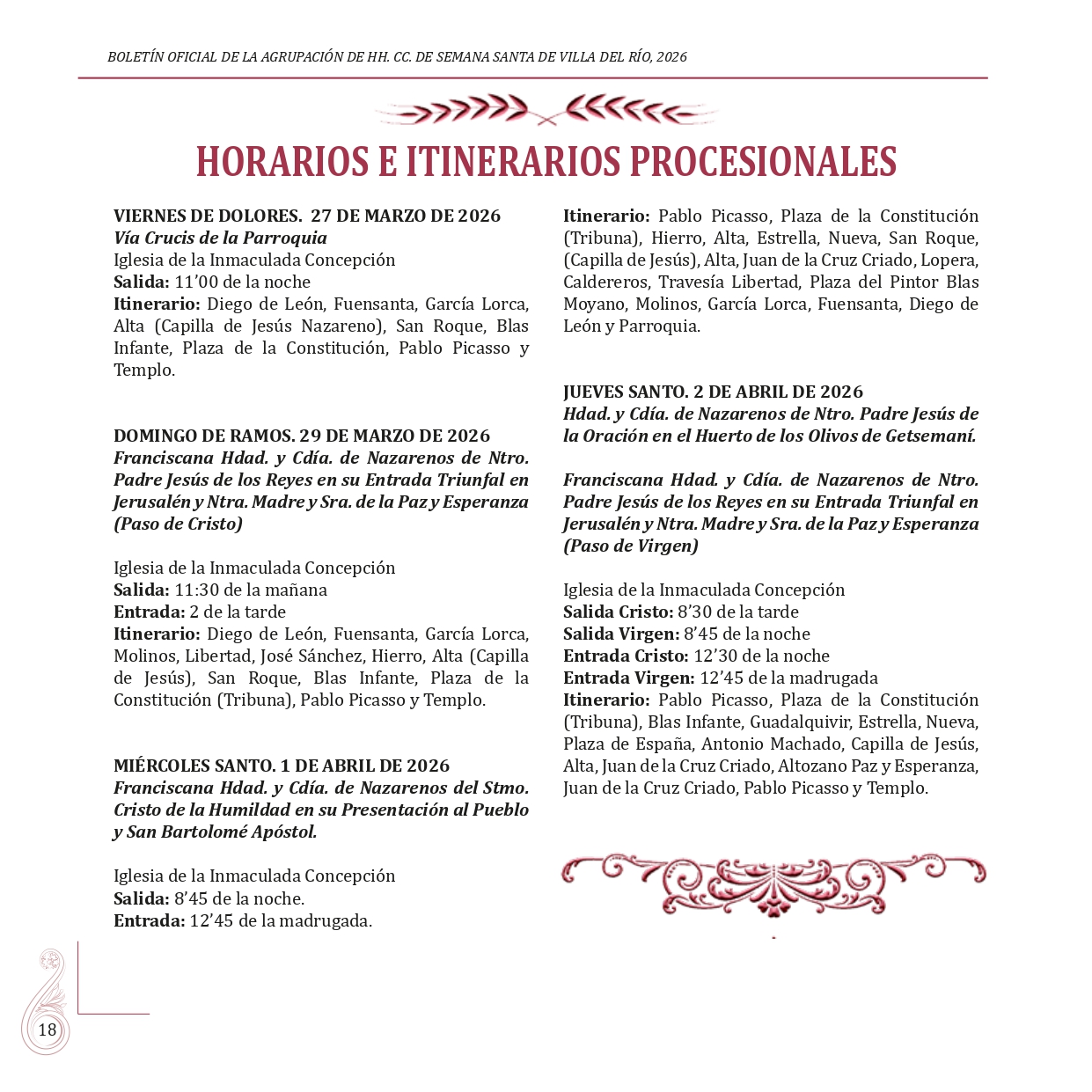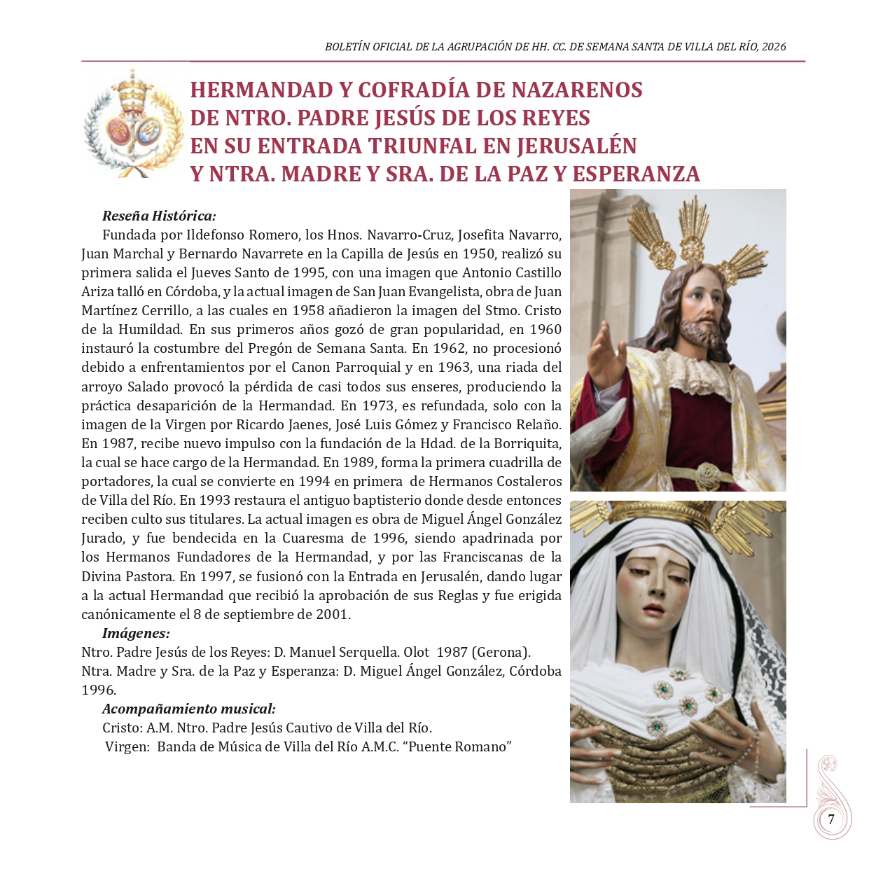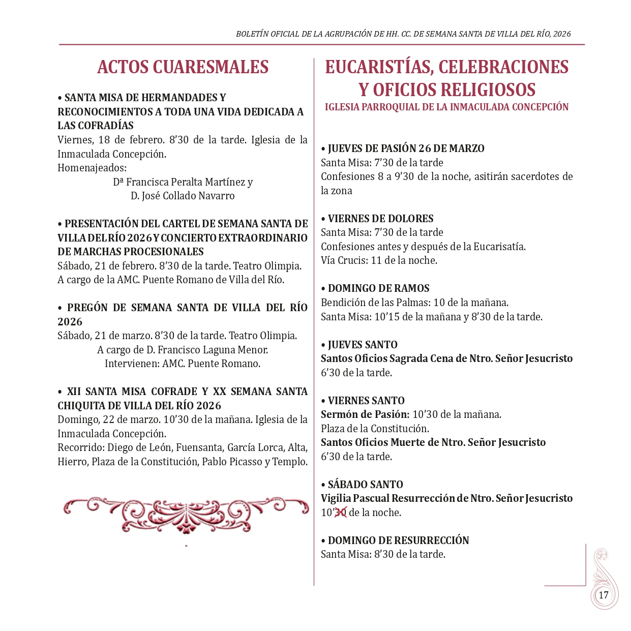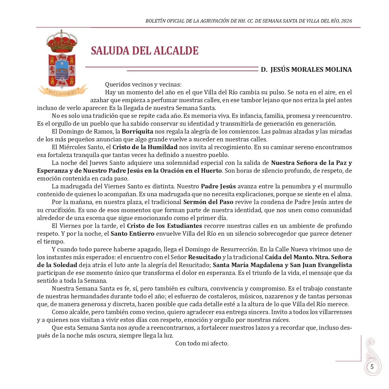BOLETÍN OFICIAL DE LA AGRUPACIÓN DE HERMANDADES Y COFRADÍAS DE LA SEMANA SANTA DE VILLA DEL RÍO 2026