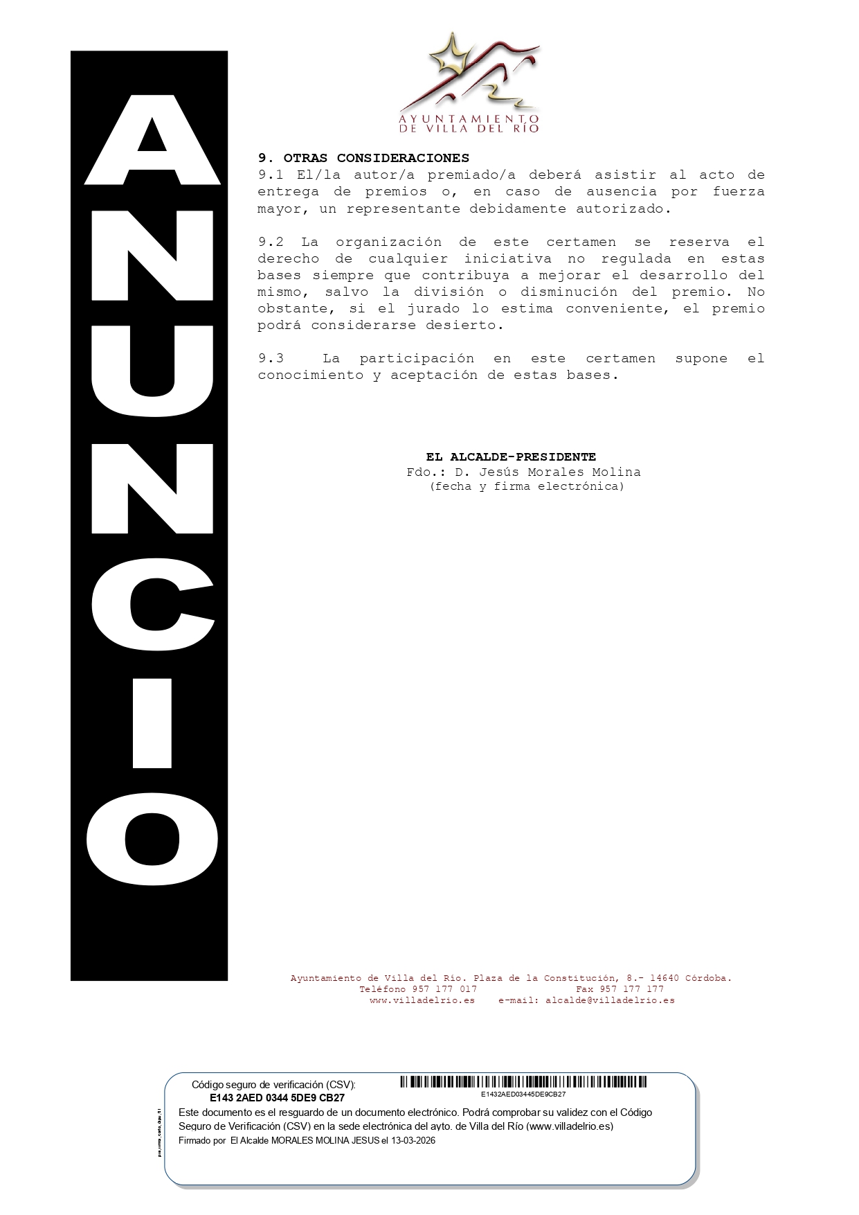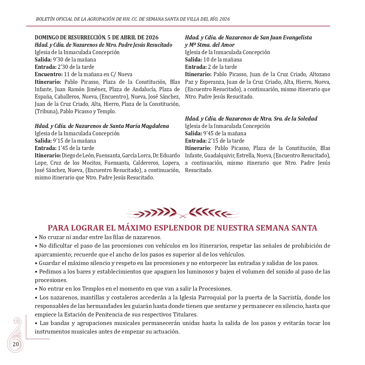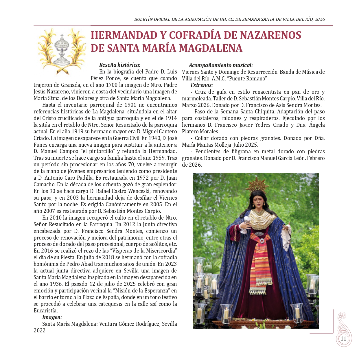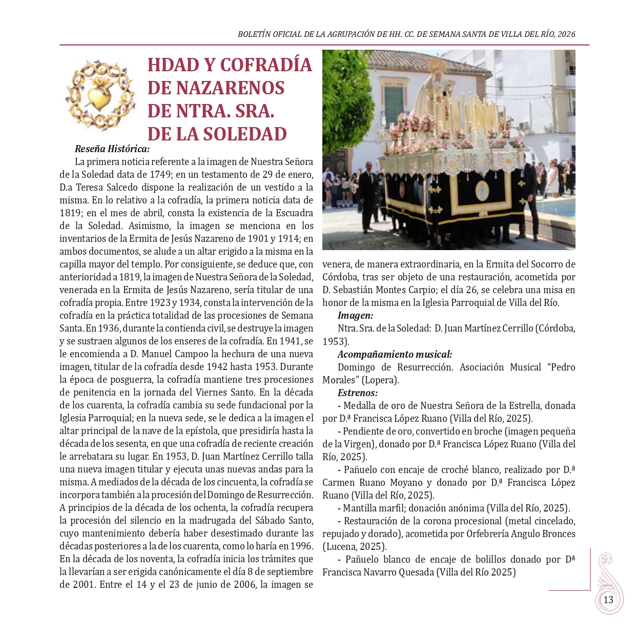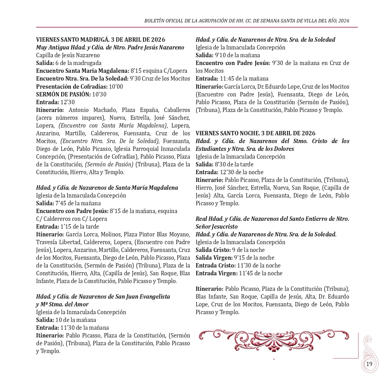 BOLETÍN OFICIAL DE LA AGRUPACIÓN DE HERMANDADES Y COFRADÍAS DE LA SEMANA SANTA DE VILLA DEL RÍO 2026