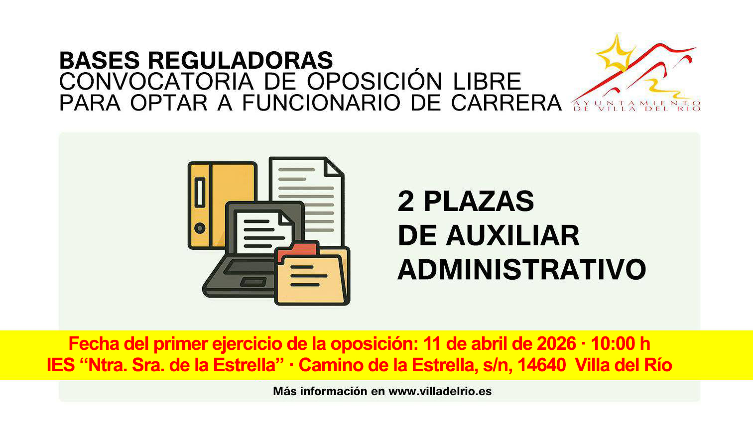 FECHA DE EXAMEN DE OPOSICIÓN PARA CUBRIR EN PROPIEDAD DOS PLAZAS DE AUXILIAR ADMINISTRATIVO