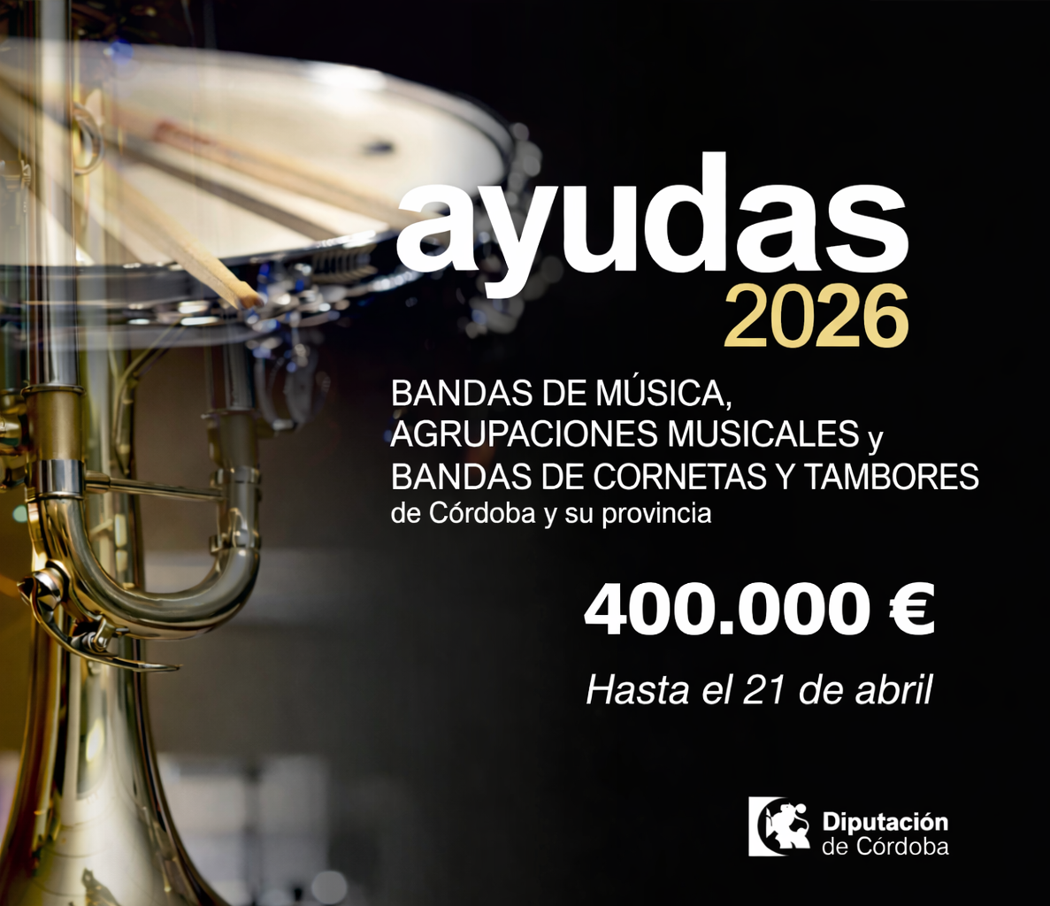 ABIERTA LA CONVOCATORIA DE AYUDAS ECONÓMICAS PARA BANDAS DE MÚSICA, AGRUPACIONES MUSICALES Y BANDAS DE CORNETAS Y TAMBORES DE LA PROVINCIA DE CÓRDOBA