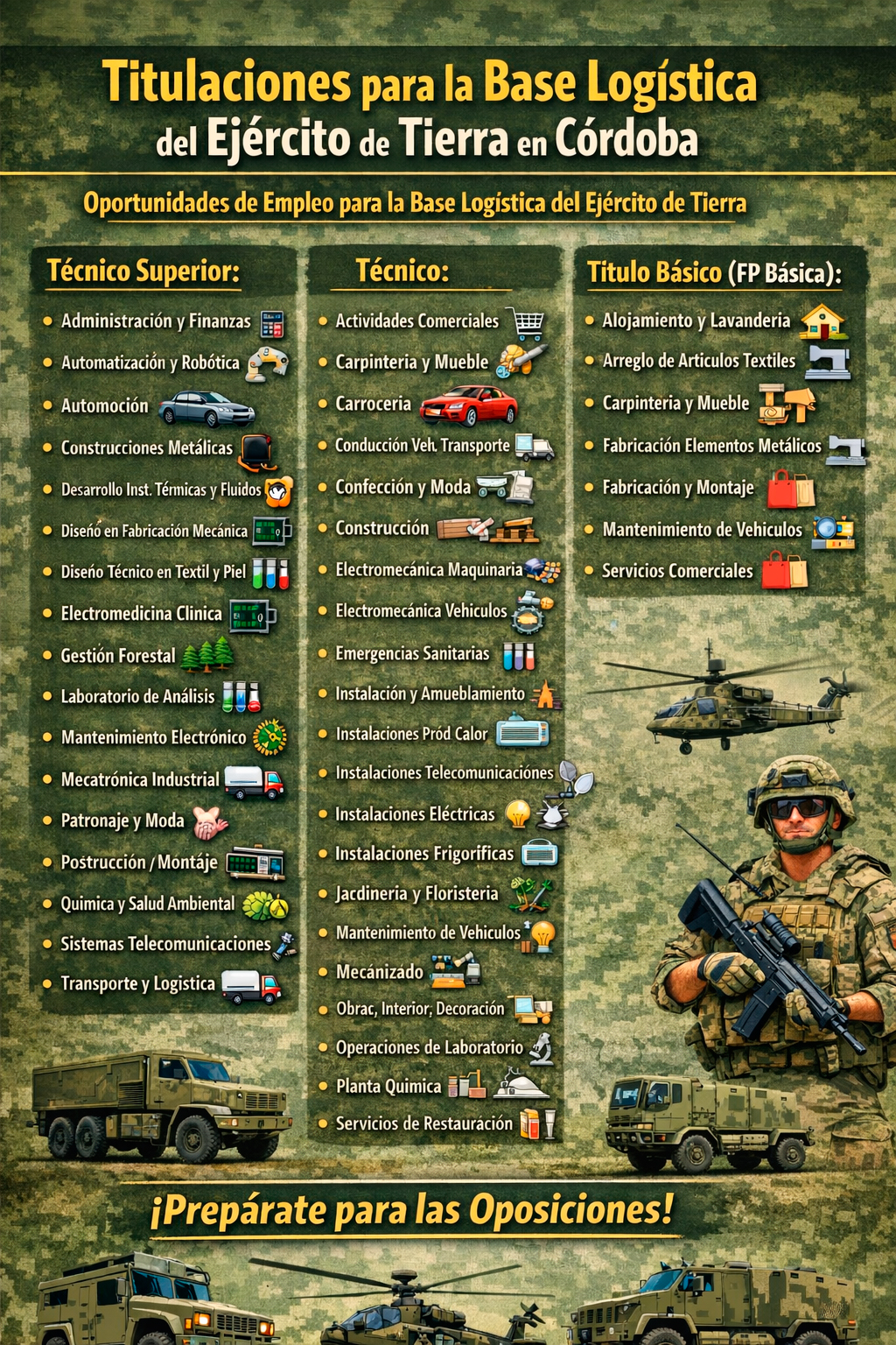 TITULACIONES DE FORMACIÓN PROFESIONAL CON SALIDA LABORAL EN LA BASE LOGÍSTICA DEL EJÉRCITO DE TIERRA EN CÓRDOBA